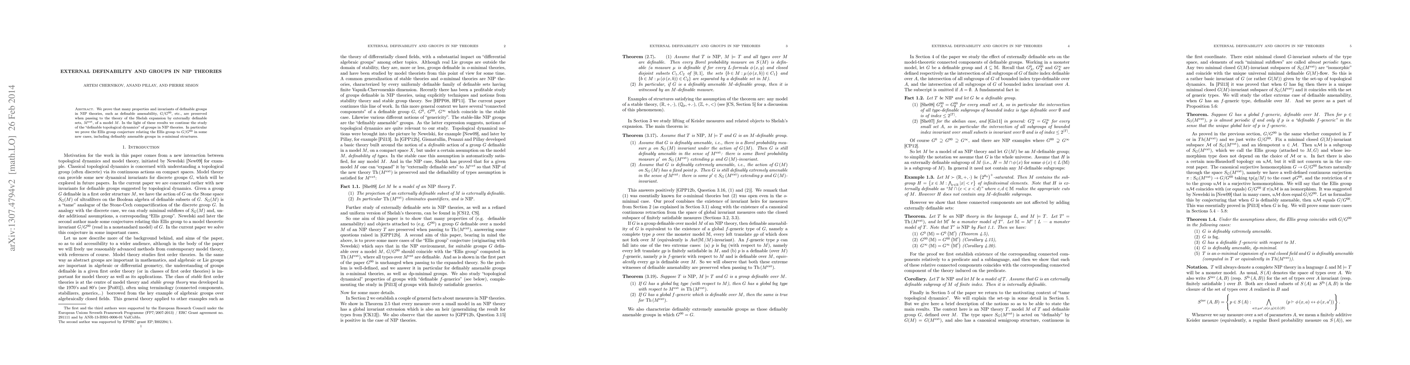 This paper demonstrates that properties of definable groups in NIP theories, like definable amenability and the quotient G/G^{00}, remain intact under the Shelah expansion by externally definable sets. It also proves the Ellis group conjecture for definably amenable groups in o-minimal structures, advancing the study of definable topological dynamics in NIP theories.