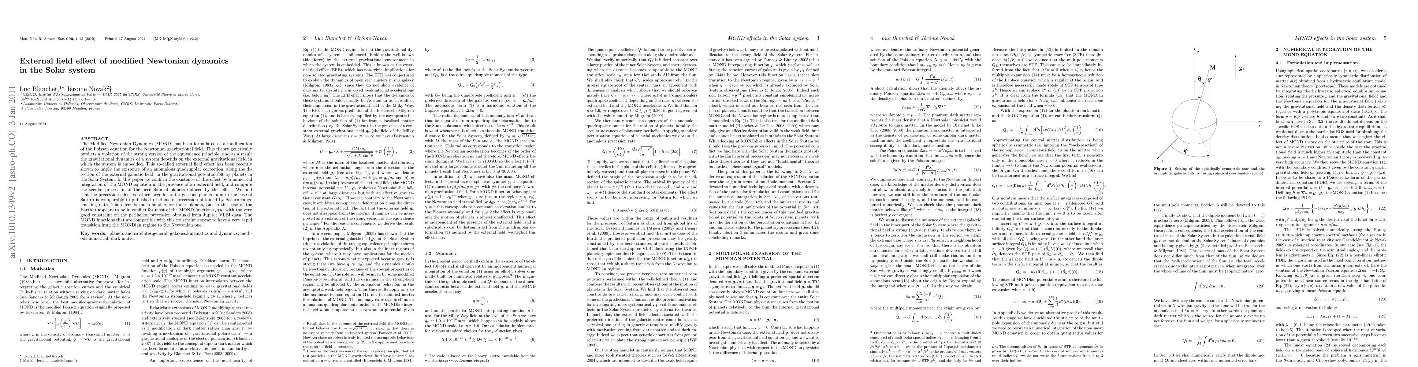 This paper confirms the external field effect in Modified Newtonian Dynamics (MOND) by numerically integrating the MOND equation, revealing significant secular precession of the perihelion of outer gaseous planets like Saturn. However, for inner planets like Earth, the effect conflicts with constraints from Jupiter VLBI data, suggesting rapid transitions in MOND functions.