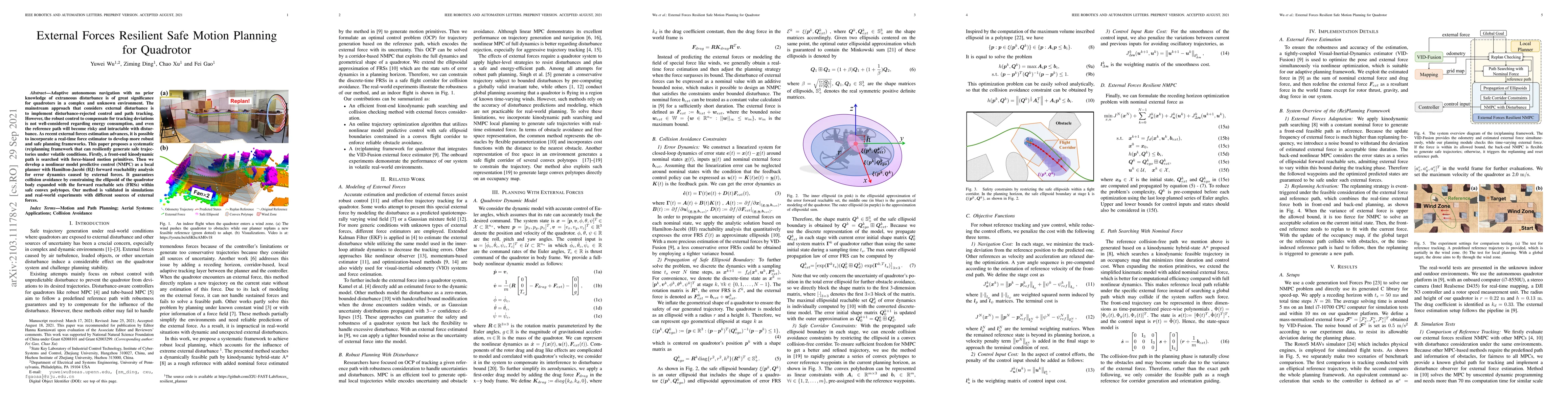 Adaptive autonomous navigation with no prior knowledge of extraneous disturbance is of great significance for quadrotors in a complex and unknown environment. The mainstream that considers external disturbance is to implement disturbance-rejected control and path tracking. However, the robust control to compensate for tracking deviations is not well-considered regarding energy consumption, and even the reference path will become risky and intractable with disturbance. As recent external forces estimation advances, it is possible to incorporate a real-time force estimator to develop more robust and safe planning frameworks. This paper proposes a systematic (re)planning framework that can resiliently generate safe trajectories under volatile conditions. Firstly, a front-end kinodynamic path is searched with force-biased motion primitives. Then we develop a nonlinear model predictive control (NMPC) as a local planner with Hamilton-Jacobi (HJ) forward reachability analysis for error dynamics caused by external forces. It guarantees collision avoidance by constraining the ellipsoid of the quadrotor body expanded with the forward reachable sets (FRSs) within safe convex polytopes. Our method is validated in simulations and real-world experiments with different sources of external forces.