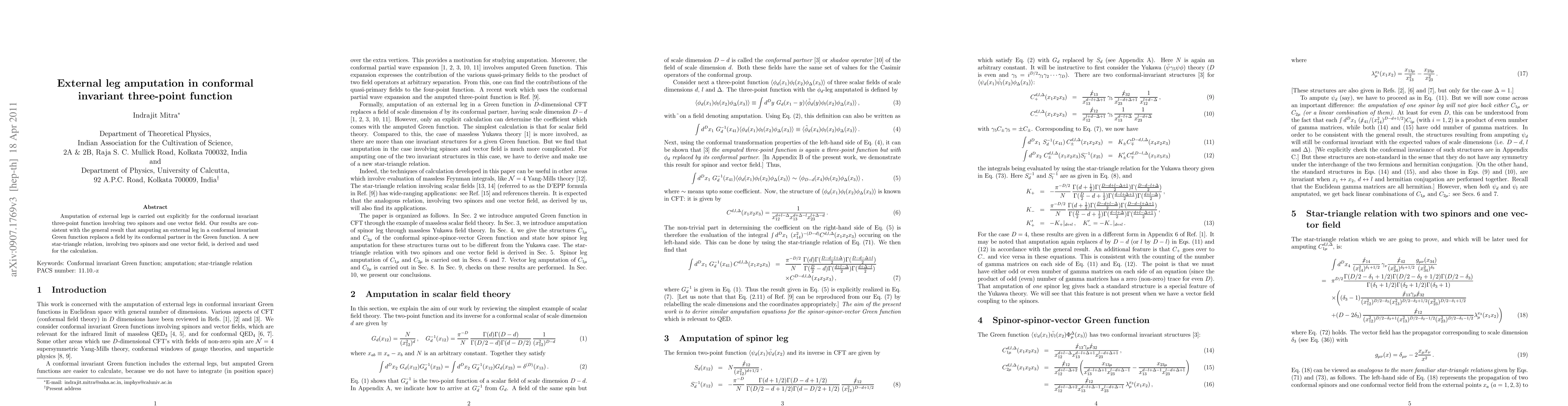 Researchers derived a new star-triangle relation to calculate external leg amputation in conformal invariant three-point functions, confirming the replacement of fields with their conformal partners.