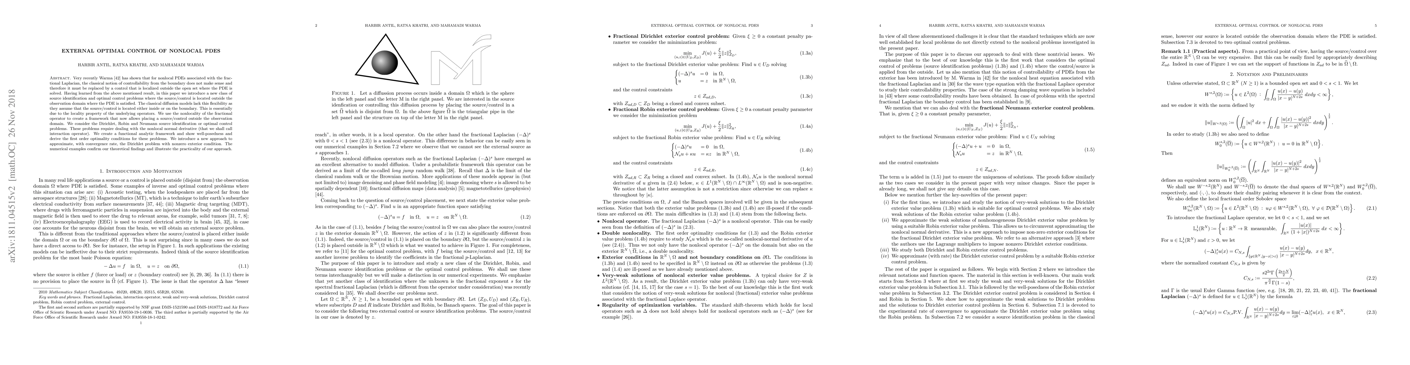 This paper introduces a novel framework for optimal control of nonlocal partial differential equations (PDEs) associated with the fractional Laplacian, allowing control sources to be located outside the observation domain. It establishes well-posedness and first-order optimality conditions, and provides a new approach to approximate the Dirichlet problem with exterior conditions, validated by numerical examples.