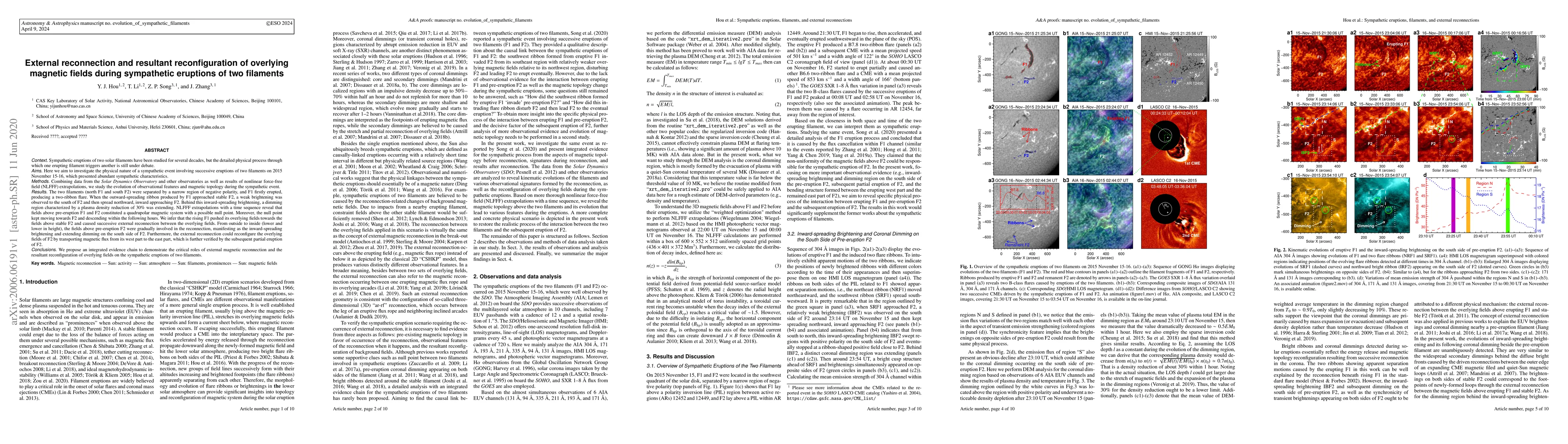 This study investigates the sympathetic eruption of two solar filaments, F1 and F2, revealing that the rising F1 triggered successive external reconnection and reconfiguration of F2's magnetic fields, leading to its partial eruption. The analysis shows how the reconnection process reconfigured magnetic flux, providing a detailed mechanism for sympathetic filament eruptions.