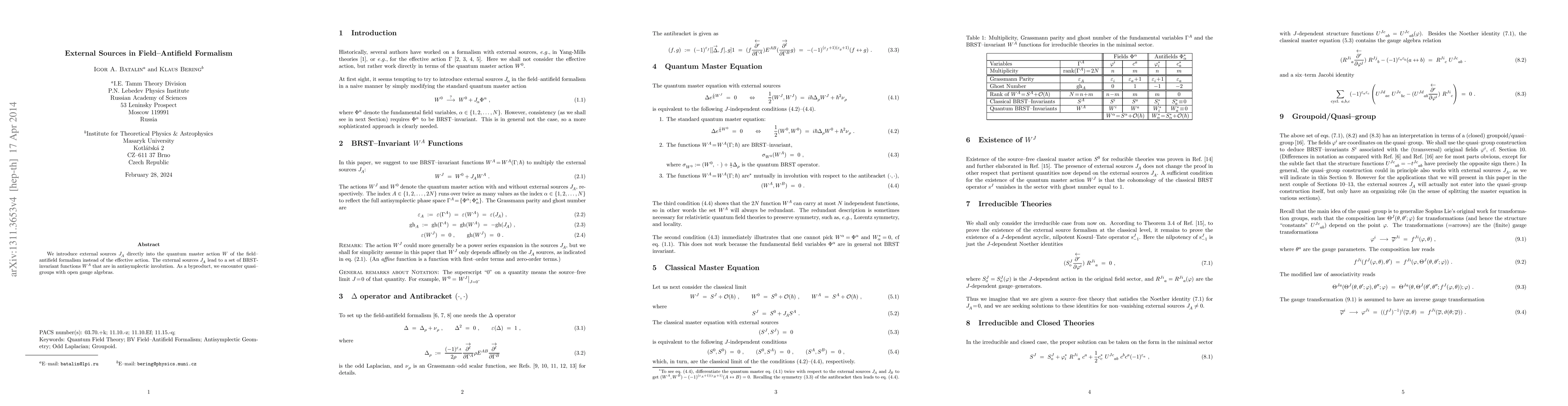 We introduce external sources J_A directly into the quantum master action W of the field-antifield formalism instead of the effective action. The external sources J_A lead to a set of BRST-invariant functions W^A that are in antisymplectic involution. As a byproduct, we encounter quasi--groups with open gauge algebras.