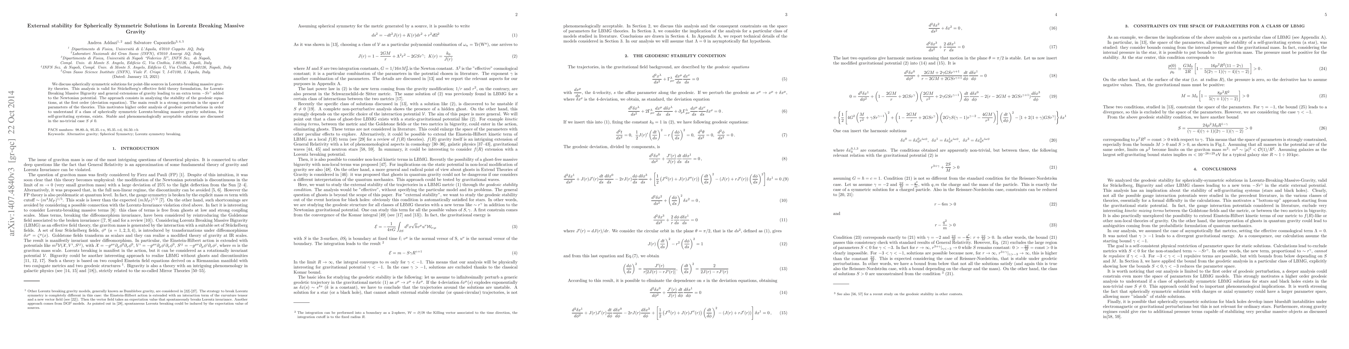 We discuss spherically symmetric solutions for point-like sources in Lorentz-breaking massive gravity theories. This analysis is valid for St\"uckelberg's effective field theory formulation, for Lorentz Breaking Massive Bigravity and general extensions of gravity leading to an extra term $-Sr^{\gamma}$ added to the Newtonian potential. The approach consists in analyzing the stability of the geodesic equations, at the first order (deviation equation). The main result is a strong constrain in the space of parameters of the theories. This motivates higher order analysis of geodesic perturbations in order to understand if a class of spherically symmetric Lorentz-breaking massive gravity solutions, for self-gravitating systems, exists. Stable and phenomenologically acceptable solutions are discussed in the no-trivial case $S\neq 0$.