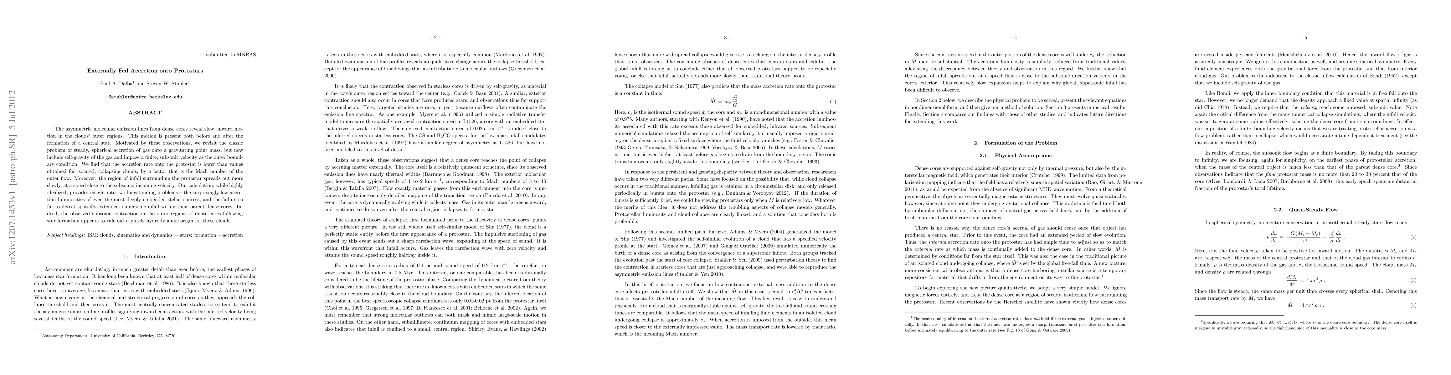 The asymmetric molecular emission lines from dense cores reveal slow, inward motion in the clouds' outer regions. This motion is present both before and after the formation of a central star. Motivated by these observations, we revisit the classic problem of steady, spherical accretion of gas onto a gravitating point mass, but now include self-gravity of the gas and impose a finite, subsonic velocity as the outer boundary condition. We find that the accretion rate onto the protostar is lower than values obtained for isolated, collapsing clouds, by a factor that is the Mach number of the outer flow. Moreover, the region of infall surrounding the protostar spreads out more slowly, at a speed close to the subsonic, incoming velocity. Our calculation, while highly idealized, provides insight into two longstanding problems -- the surprisingly low accretion luminosities of even the most deeply embedded stellar sources, and the failure so far to detect spatially extended, supersonic infall within their parent dense cores. Indeed, the observed subsonic contraction in the outer regions of dense cores following star formation appears to rule out a purely hydrodynamic origin for these clouds.
