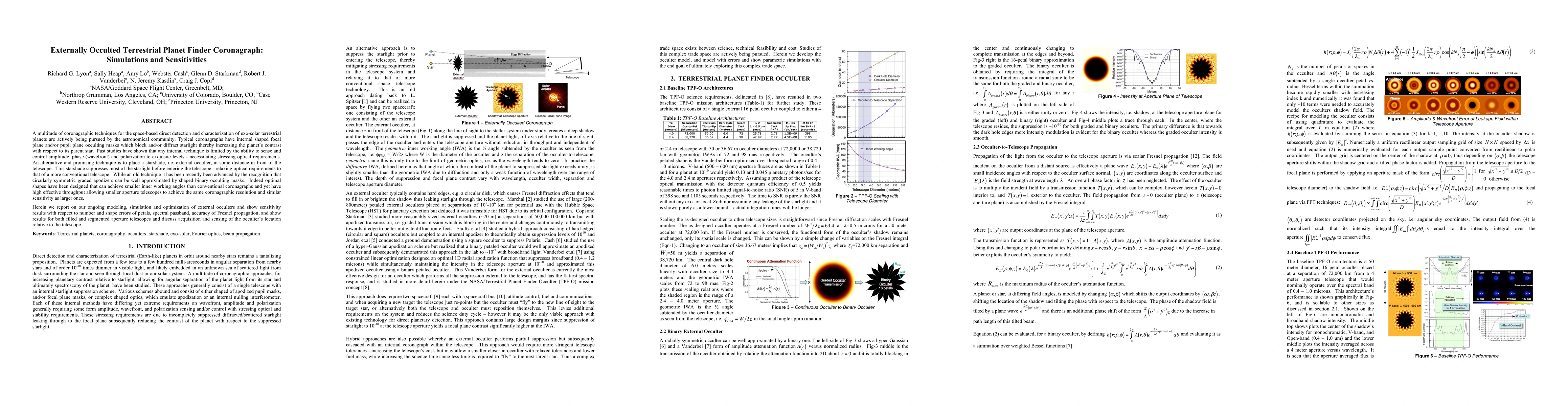 A multitude of coronagraphic techniques for the space-based direct detection and characterization of exo-solar terrestrial planets are actively being pursued by the astronomical community. Typical coronagraphs have internal shaped focal plane and/or pupil plane occulting masks which block and/or diffract starlight thereby increasing the planet's contrast with respect to its parent star. Past studies have shown that any internal technique is limited by the ability to sense and control amplitude, phase (wavefront) and polarization to exquisite levels - necessitating stressing optical requirements. An alternative and promising technique is to place a starshade, i.e. external occulter, at some distance in front of the telescope. This starshade suppresses most of the starlight before entering the telescope - relaxing optical requirements to that of a more conventional telescope. While an old technique it has been recently been advanced by the recognition that circularly symmetric graded apodizers can be well approximated by shaped binary occulting masks. Indeed optimal shapes have been designed that can achieve smaller inner working angles than conventional coronagraphs and yet have high effective throughput allowing smaller aperture telescopes to achieve the same coronagraphic resolution and similar sensitivity as larger ones. Herein we report on our ongoing modeling, simulation and optimization of external occulters and show sensitivity results with respect to number and shape errors of petals, spectral passband, accuracy of Fresnel propagation, and show results for both filled and segmented aperture telescopes and discuss acquisition and sensing of the occulter's location relative to the telescope.