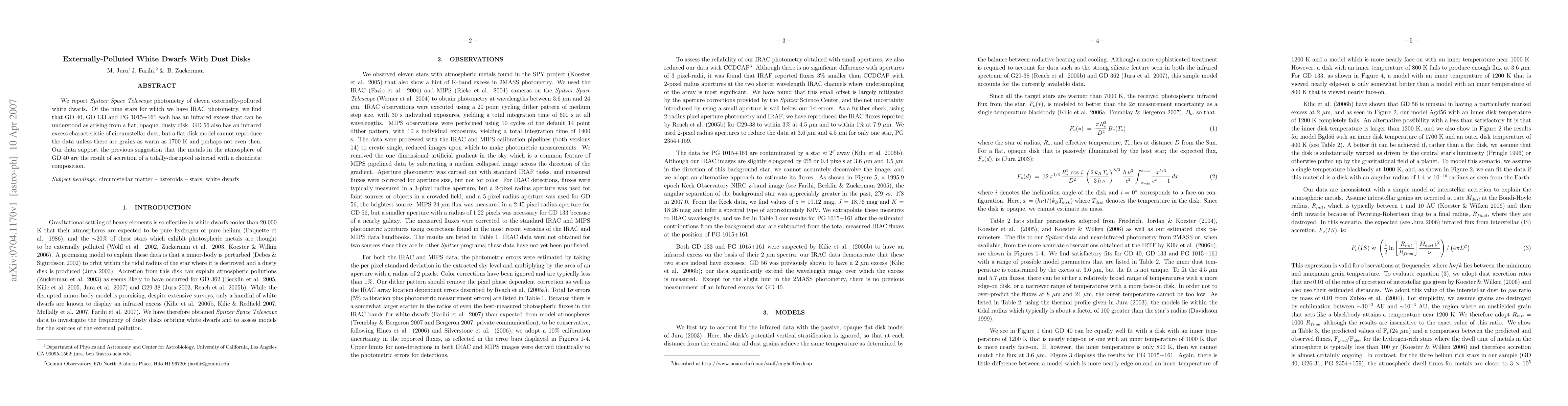 This study uses Spitzer Space Telescope data to identify infrared excesses in eleven externally-polluted white dwarfs, suggesting three have dusty disks, while GD 56's excess is more complex. The findings support the theory that GD 40's atmospheric metals result from an asteroid accretion event.