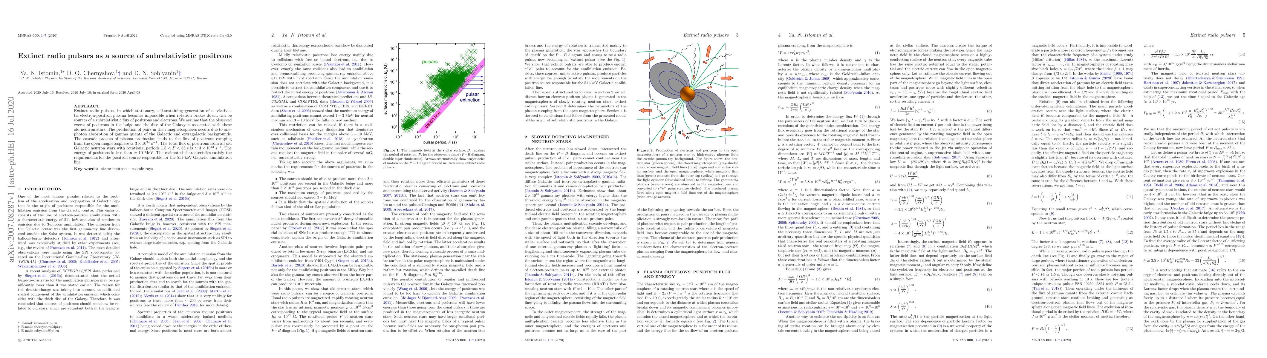This paper proposes that extinct radio pulsars, which can no longer sustain relativistic electron-positron plasmas, emit a subrelativistic flux of positrons. The study suggests these old neutron stars could be the source of the observed excess positrons in the Galactic bulge and disc, with positrons produced via gamma-photon absorption in their magnetospheres.