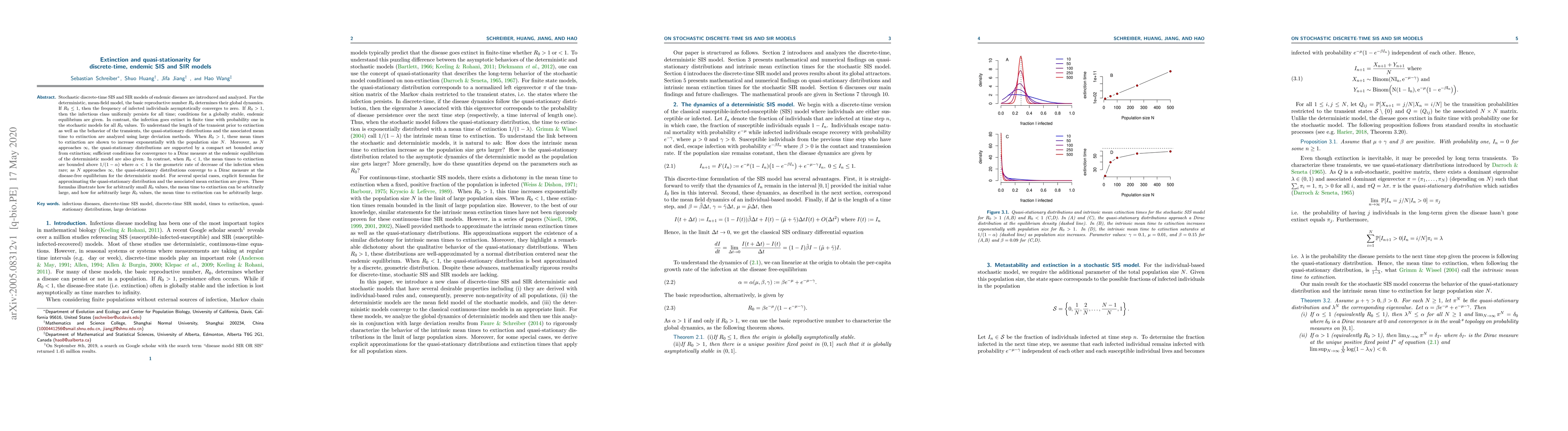 Stochastic discrete-time SIS and SIR models show that infection extinction occurs in finite time with probability one, but the length of the transient period before extinction increases exponentially with population size for R0 > 1.