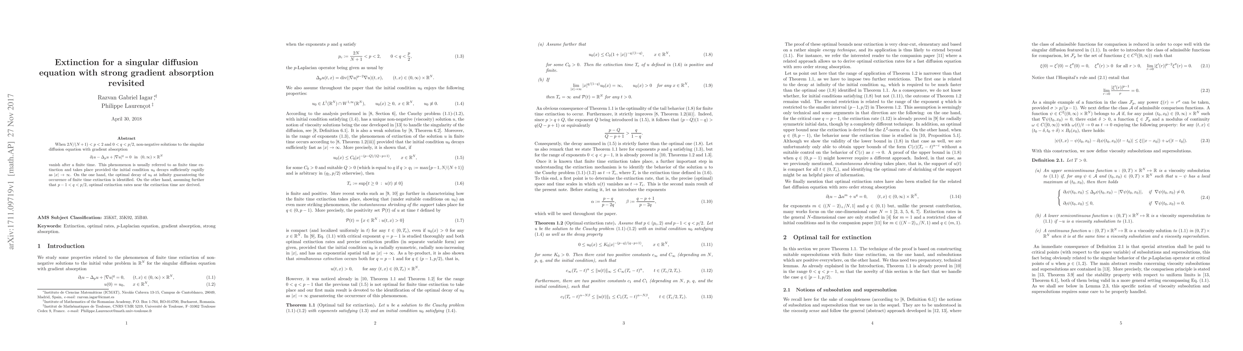 This paper investigates the finite time extinction phenomenon for a singular diffusion equation with gradient absorption, identifying the optimal decay rate of initial conditions that ensures extinction and deriving optimal extinction rates near the extinction time under additional conditions.