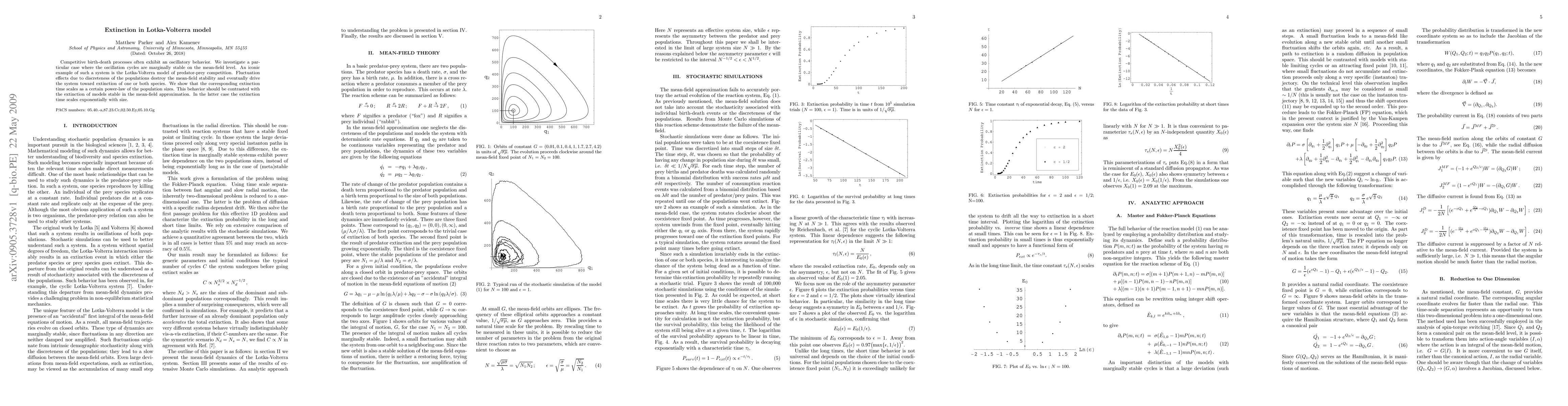 This paper examines the extinction dynamics in the Lotka-Volterra model, revealing that fluctuation effects from population discreteness lead to extinction times scaling as a power-law with population sizes, contrasting with the exponential scaling seen in mean-field stable models.