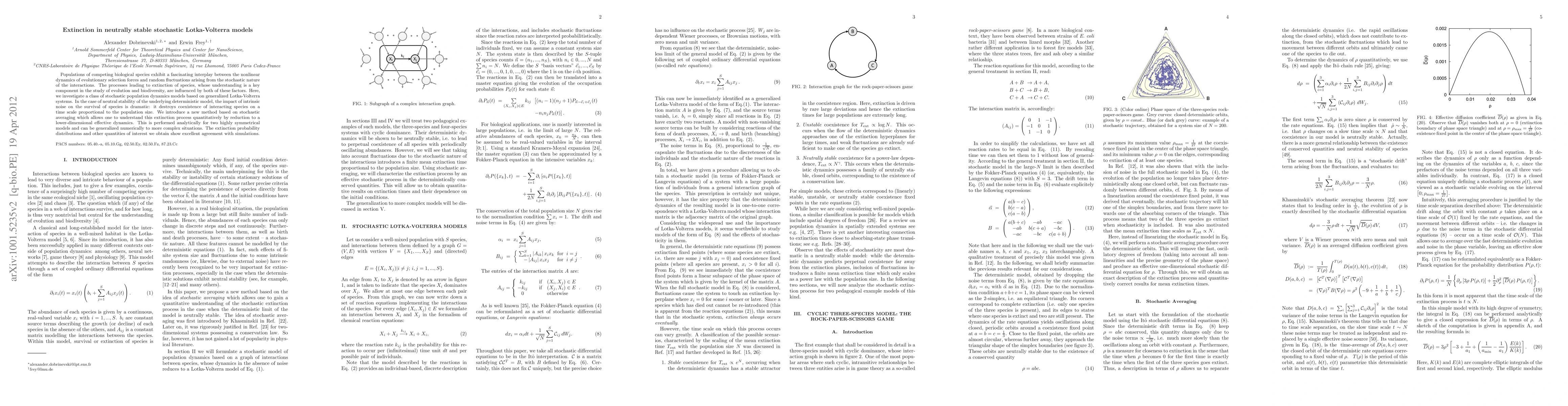 This paper examines extinction processes in neutrally stable stochastic Lotka-Volterra models, revealing how intrinsic noise dramatically affects species survival and coexistence. A novel stochastic averaging method is developed to analytically quantify the extinction dynamics for symmetrical models, with numerical extensions for more complex cases.