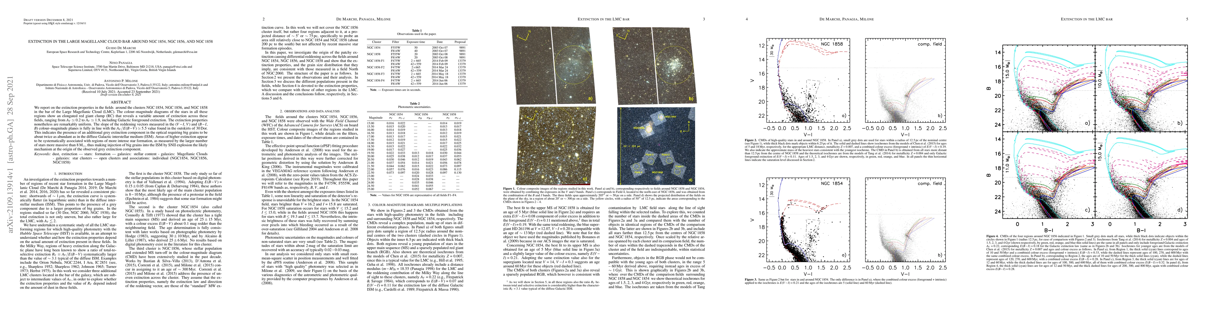 The Large Magellanic Cloud bar region shows variable but uniform extinction across fields, with a grey component suggesting big grains twice as abundant as in the Galactic ISM.
