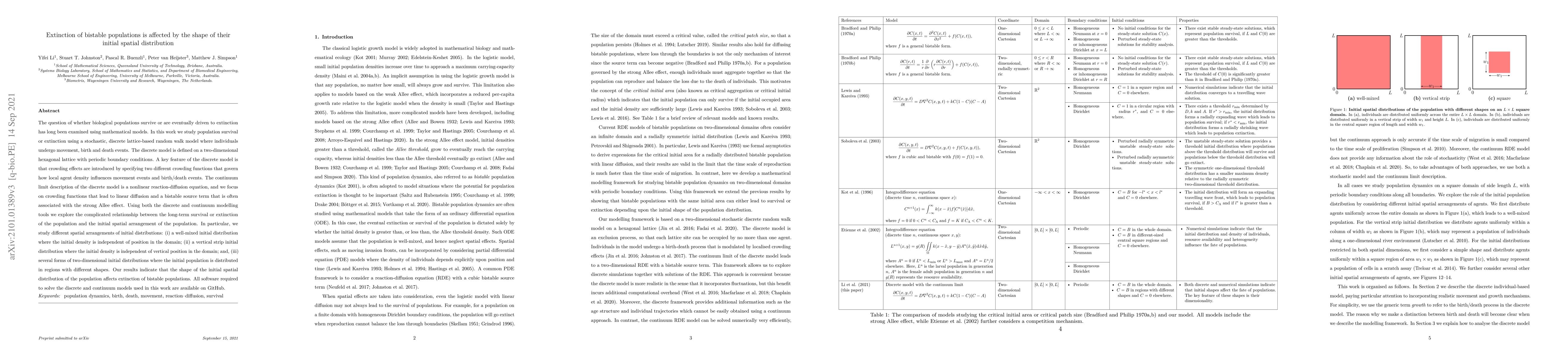 Research shows that the initial spatial distribution of a population affects its survival or extinction, with different shapes leading to varying outcomes in bistable populations.