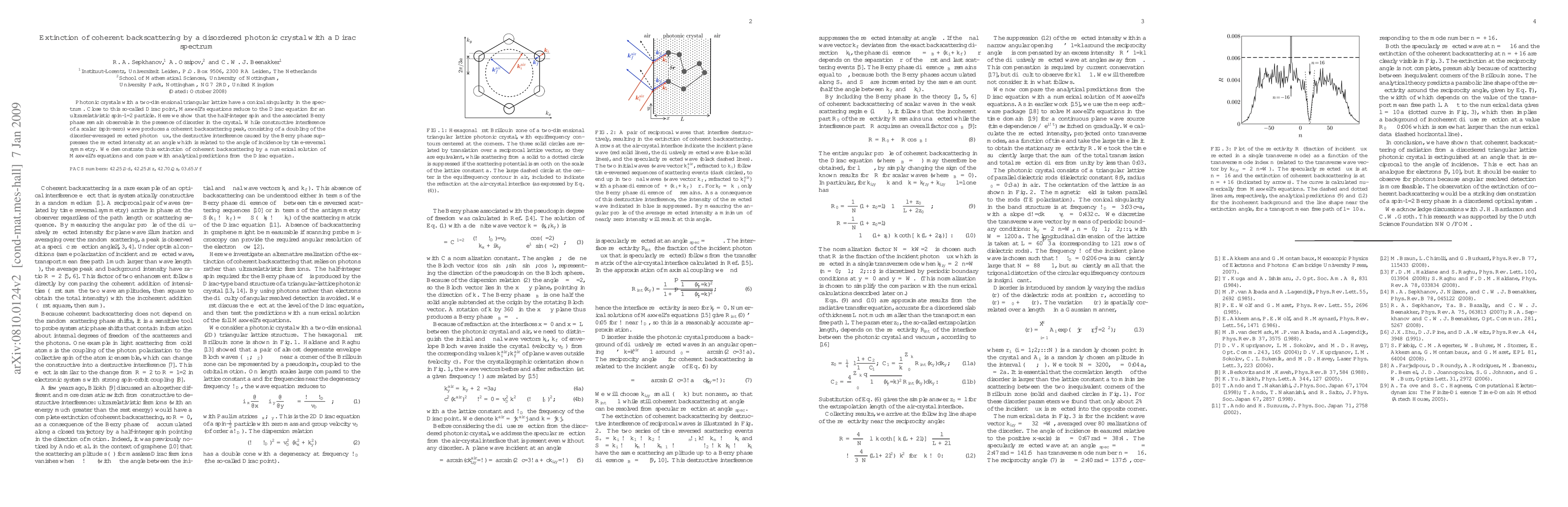 This paper investigates the extinction of coherent backscattering in a disordered photonic crystal near its Dirac point, showing that the Berry phase suppresses reflected intensity despite the presence of disorder. Numerical simulations and analytical predictions from the Dirac equation confirm this phenomenon.