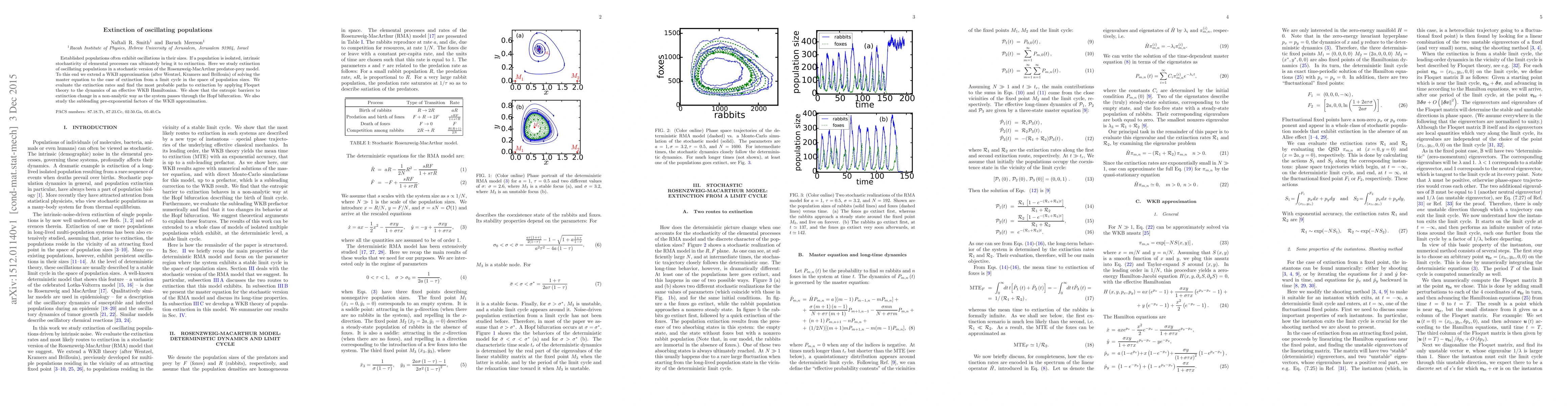 Research finds that oscillating populations can go extinct due to stochastic processes, with extinction rates and paths varying near a Hopf bifurcation point, and the study provides new insights into population dynamics.