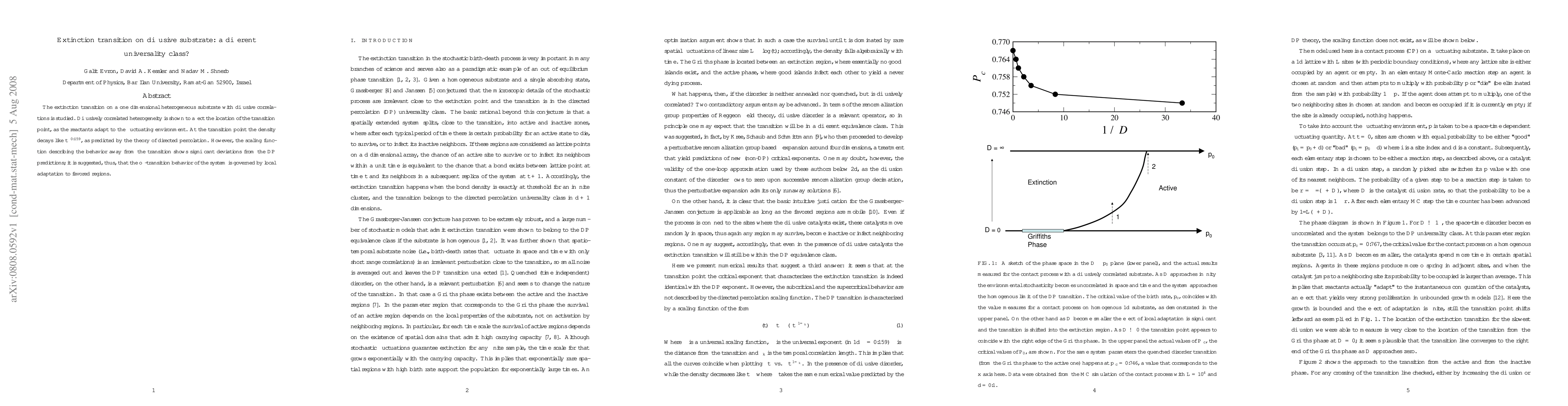 The extinction transition on a one dimensional heterogeneous substrate with diffusive correlations is studied. Diffusively correlated heterogeneity is shown to affect the location of the transition point, as the reactants adapt to the fluctuating environment. At the transition point the density decays like $t^{-0.159}$, as predicted by the theory of directed percolation. However, the scaling function describing the behavior away from the transition shows significant deviations from the DP predictions; it is suggested, thus, that the off-transition behavior of the system is governed by local adaptation to favored regions.