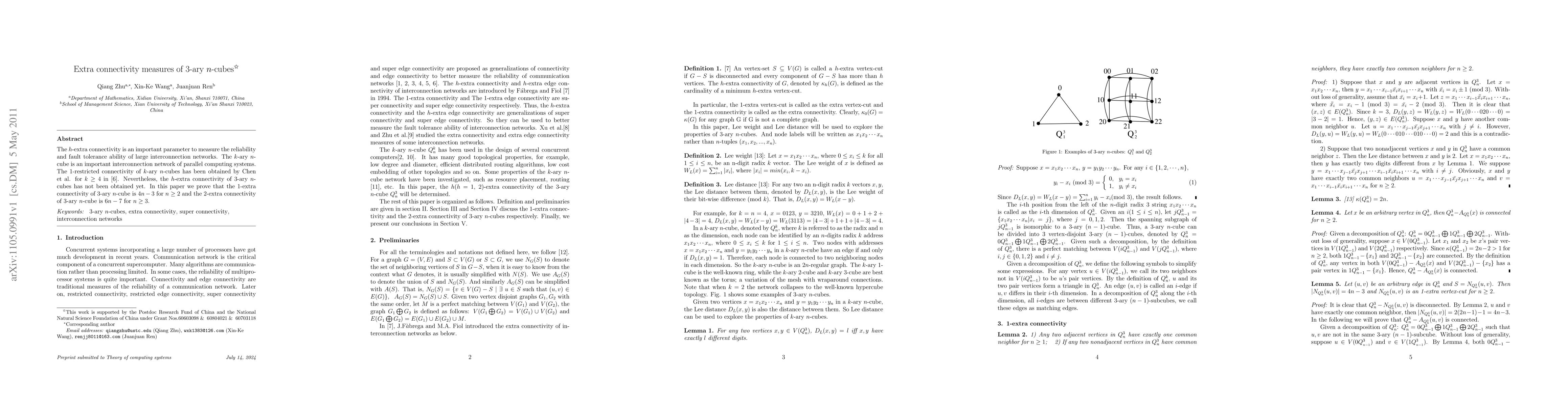 A combination of theoretical analysis and computational simulation was used to investigate the 1-extraconnectivity and 2-extraconnectivity of 3-aryn-cubes.