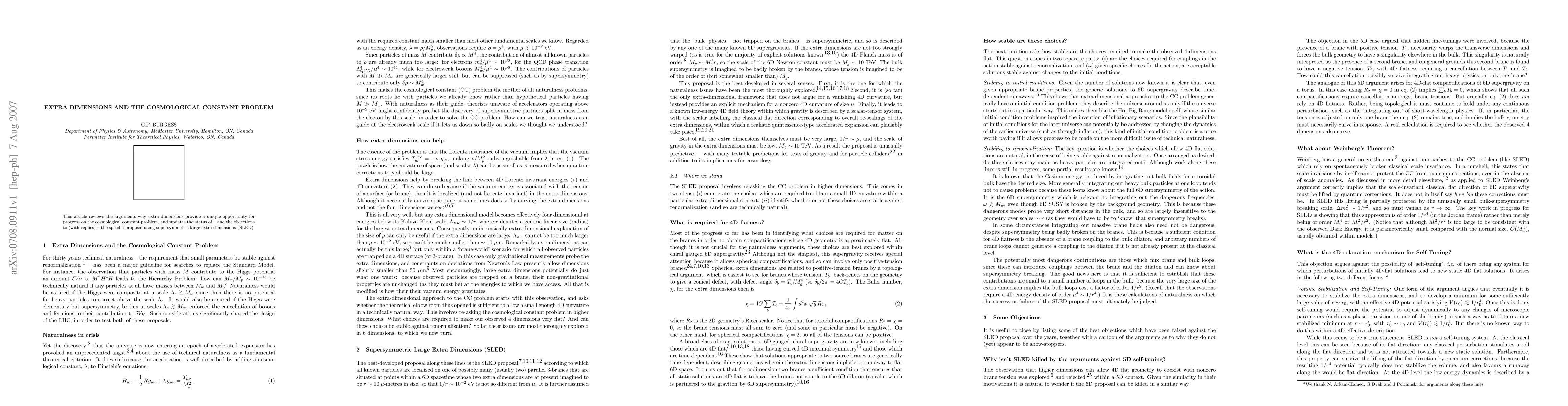 This paper reviews the potential of extra dimensions to address the cosmological constant problem, focusing on the proposal of supersymmetric large extra dimensions (SLED), while also discussing current objections and the authors' responses.