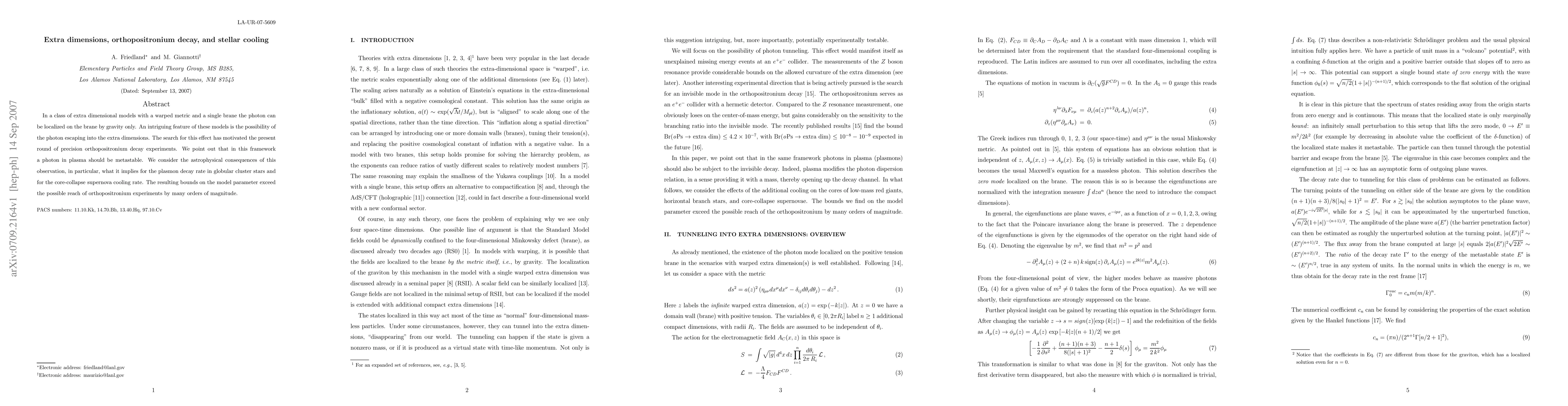 This paper explores extra dimensional models where photons can escape into extra dimensions, affecting orthopositronium decay precision. It finds that photons in plasma may be metastable, influencing plasmon decay rates in globular cluster stars and supernova cooling, with model parameter bounds surpassing the reach of current orthopositronium experiments.