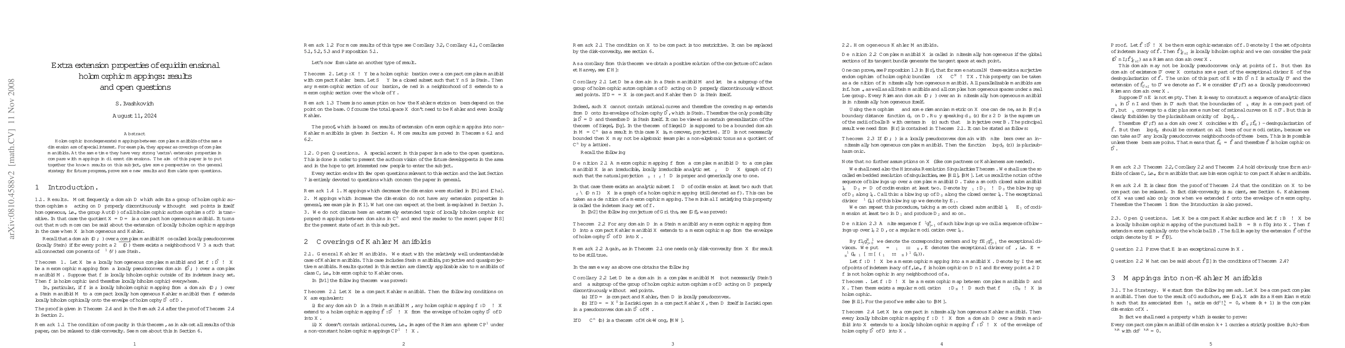This paper reviews known results on the extra extension properties of holomorphic mappings between complex manifolds of the same dimension, proposes new findings, and outlines future research directions while highlighting open questions in the field.
