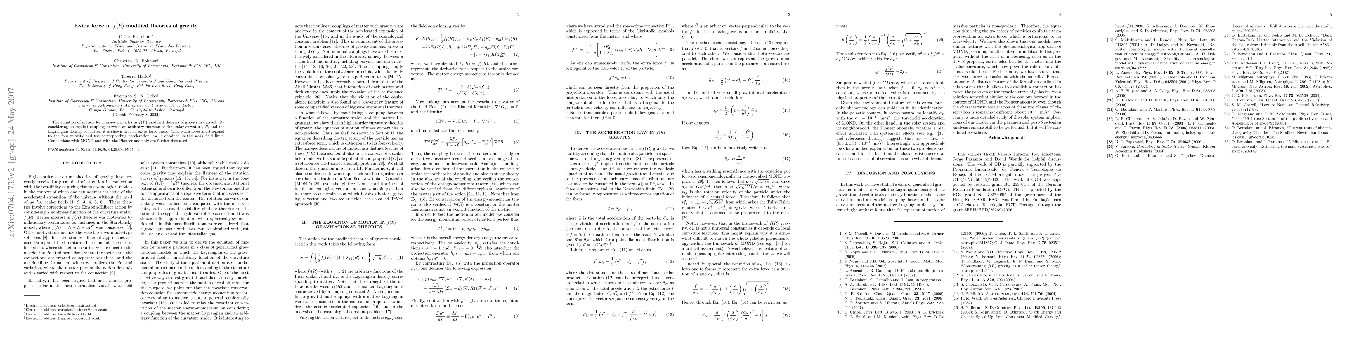 This paper derives the equation of motion for test particles in $f(R)$ modified gravity, revealing an extra orthogonal force arising from the coupling between the scalar curvature and the matter Lagrangian, and discusses its implications in the weak field limit, including connections to MOND and the Pioneer anomaly.