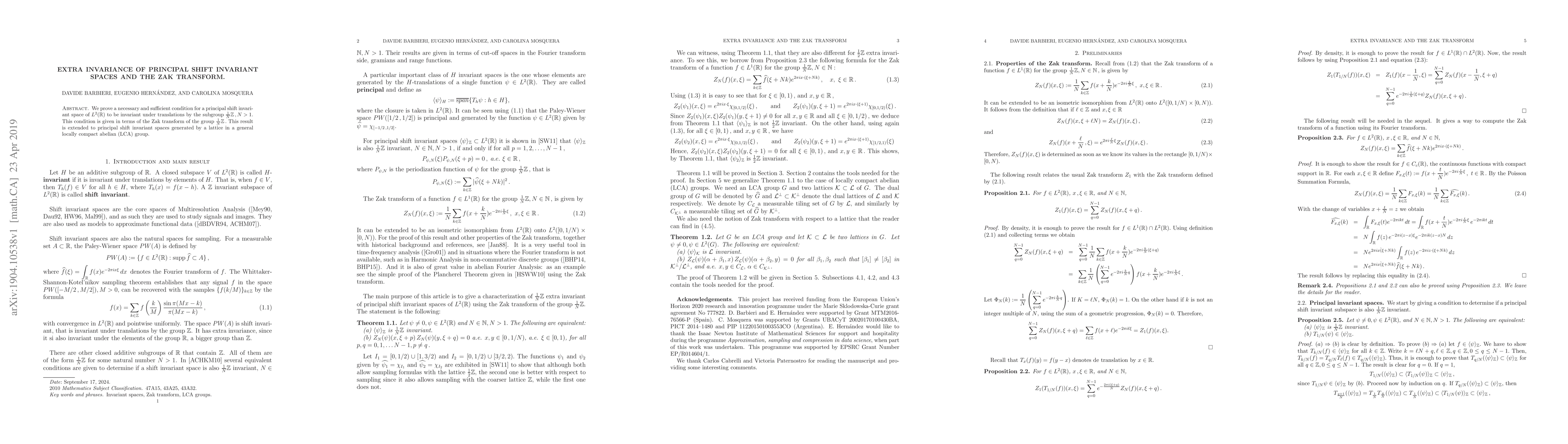 This paper establishes a necessary and sufficient condition for principal shift invariant spaces in $L^2(\mathbb{R})$ to remain invariant under translations by $\frac{1}{N} \mathbb{Z}$, using the Zak transform. The findings are generalized to principal shift invariant spaces in locally compact abelian groups.