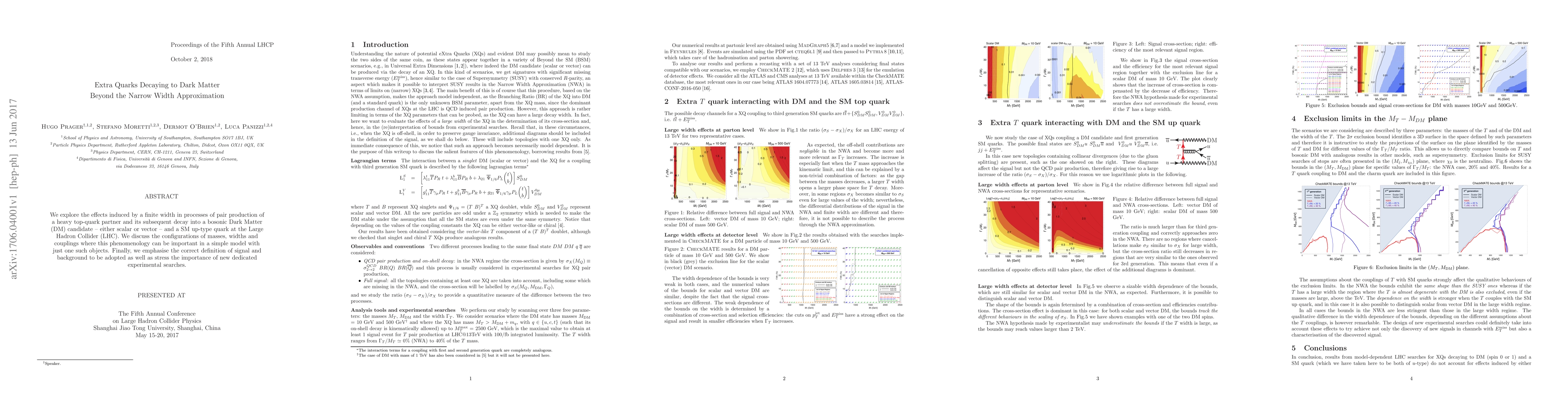 We explore the effects induced by a finite width in processes of pair production of a heavy top-quark partner and its subsequent decay into a bosonic Dark Matter (DM) candidate -- either scalar or vector -- and a SM up-type quark at the Large Hadron Collider (LHC). We discuss the configurations of masses, widths and couplings where this phenomenology can be important in a simple model with just one such objects. Finally, we emphasise the correct definition of signal and background to be adopted as well as stress the importance of new dedicated experimental searches.