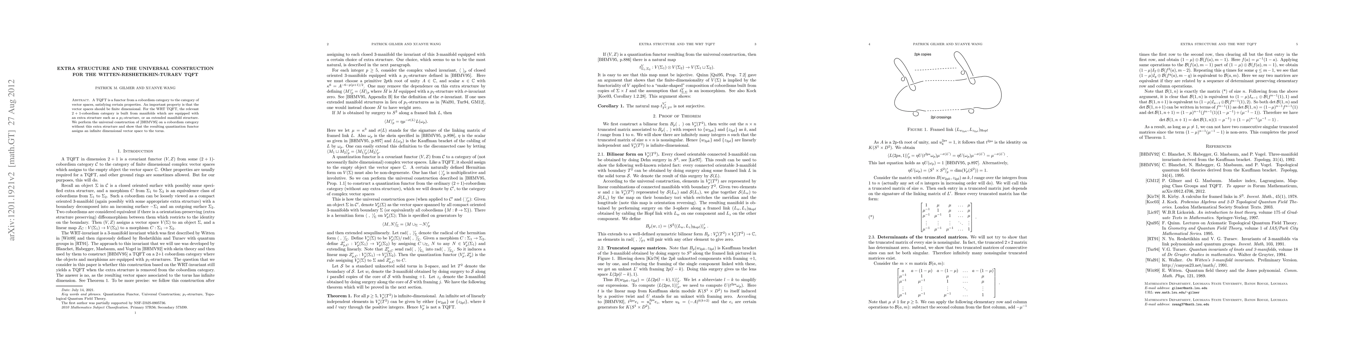 A TQFT is a functor from a cobordism category to the category of vector spaces, satisfying certain properties. An important property is that the vector spaces should be finite dimensional. For the WRT TQFT, the relevant 2+1-cobordism category is built from manifolds which are equipped with an extra structure such as a p_1-structure, or an extended manifold structure. We perform the universal construction of Blanchet, Habegger, Masbaum and Vogel on a cobordism category without this extra structure and show that the resulting quantization functor assigns an infinite dimensional vector space to the torus.