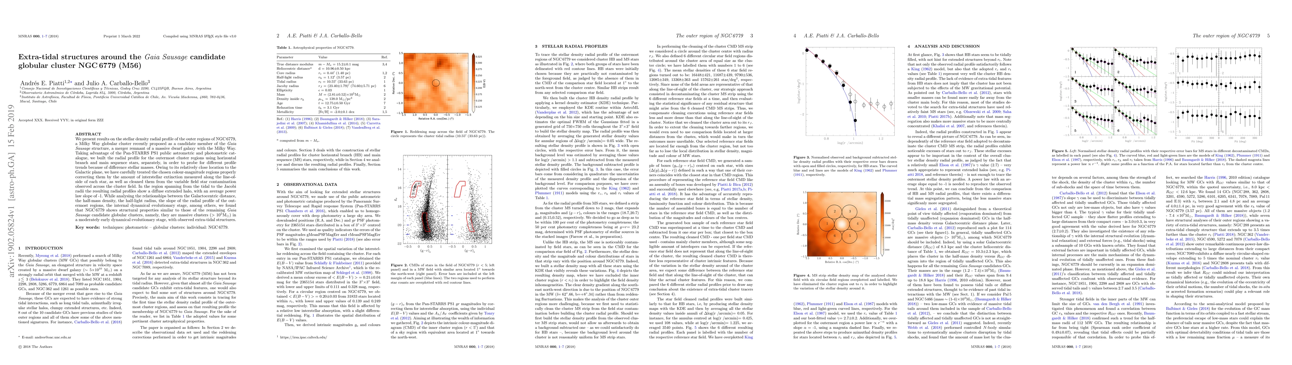 We present results on the stellar density radial profile of the outer regions of NGC6779, a Milky Way globular cluster recently proposed as a candidate member of the Gaia Sausage structure, a merger remnant of a massive dwarf galaxy with the Milky Way. Taking advantage of the Pan-STARRS PS1 public astrometric and photometric catalogue, we built the radial profile for the outermost cluster regions using horizontal branch and main sequence stars, separately, in order to probe for different profile trends because of difference stellar masses. Owing to its relatively close location to the Galactic plane, we have carefully treated the chosen colour-magnitude regions properly correcting them by the amount of interstellar extinction measured along the line-of-side of each star, as well as cleaned them from the variable field star contamination observed across the cluster field. In the region spanning from the tidal to the Jacobi radii the resulting radial profiles show a diffuse extended halo, with an average power law slope of -1. While analysing the relationships between the Galactocentric distance, the half-mass density, the half-light radius, the slope of the radial profile of the outermost regions, the internal dynamical evolutionary stage, among others, we found that NGC6779 shows structural properties similar to those of the remaining Gaia Sausage candidate globular clusters, namely, they are massive clusters (>10^5Mo) in a moderately early dynamical evolutionary stage, with observed extra-tidal structures.