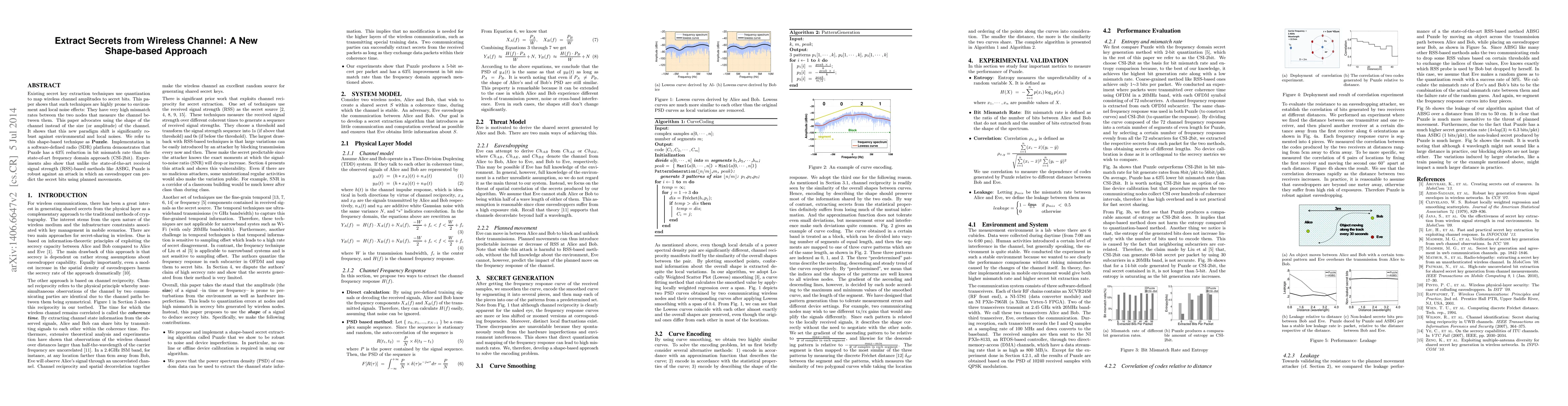 Existing secret key extraction techniques use quantization to map wireless channel amplitudes to secret bits. This pa- per shows that such techniques are highly prone to environ- ment and local noise effects: They have very high mismatch rates between the two nodes that measure the channel be- tween them. This paper advocates using the shape of the channel instead of the size (or amplitude) of the channel. It shows that this new paradigm shift is significantly ro- bust against environmental and local noises. We refer to this shape-based technique as Puzzle. Implementation in a software-defined radio (SDR) platform demonstrates that Puzzle has a 63% reduction in bit mismatch rate than the state-of-art frequency domain approach (CSI-2bit). Exper- iments also show that unlike the state-of-the-art received signal strength (RSS)-based methods like ASBG, Puzzle is robust against an attack in which an eavesdropper can pre- dict the secret bits using planned movements.