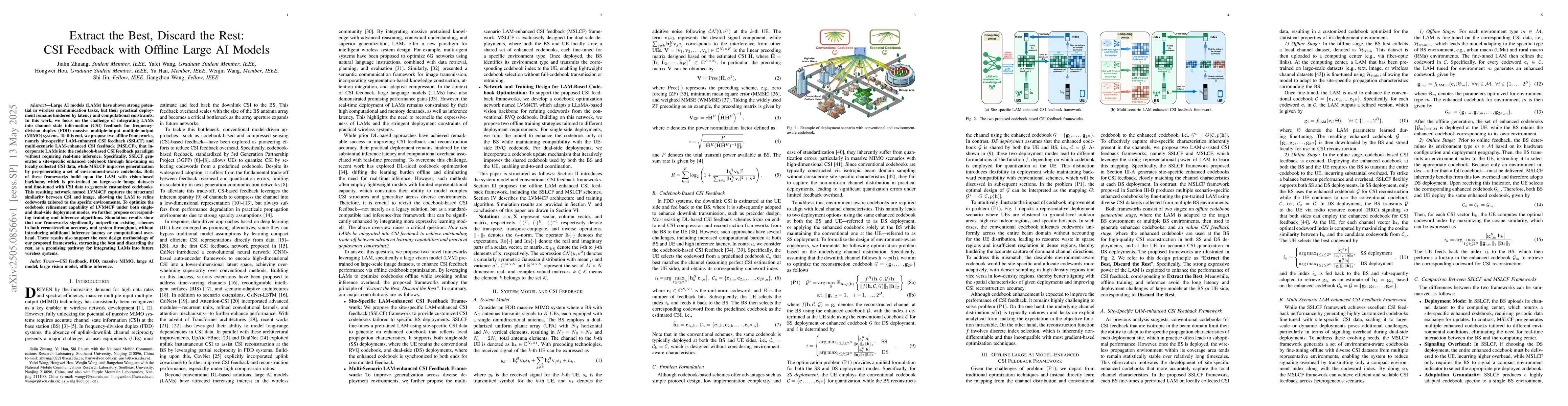 This work introduces novel offline frameworks that leverage large AI models for CSI feedback, distinguishing itself by focusing on site-specific and multi-scenario codebook enhancements, and validating a core design methodology for LAM integration in wireless systems.