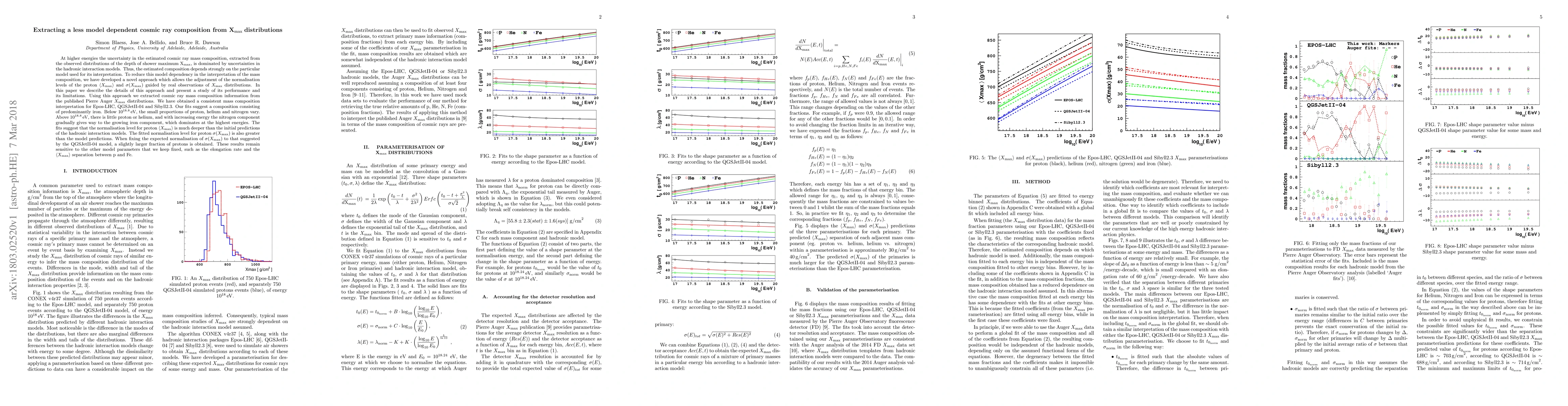 composition, extracted from the observed distributions of the depth of shower