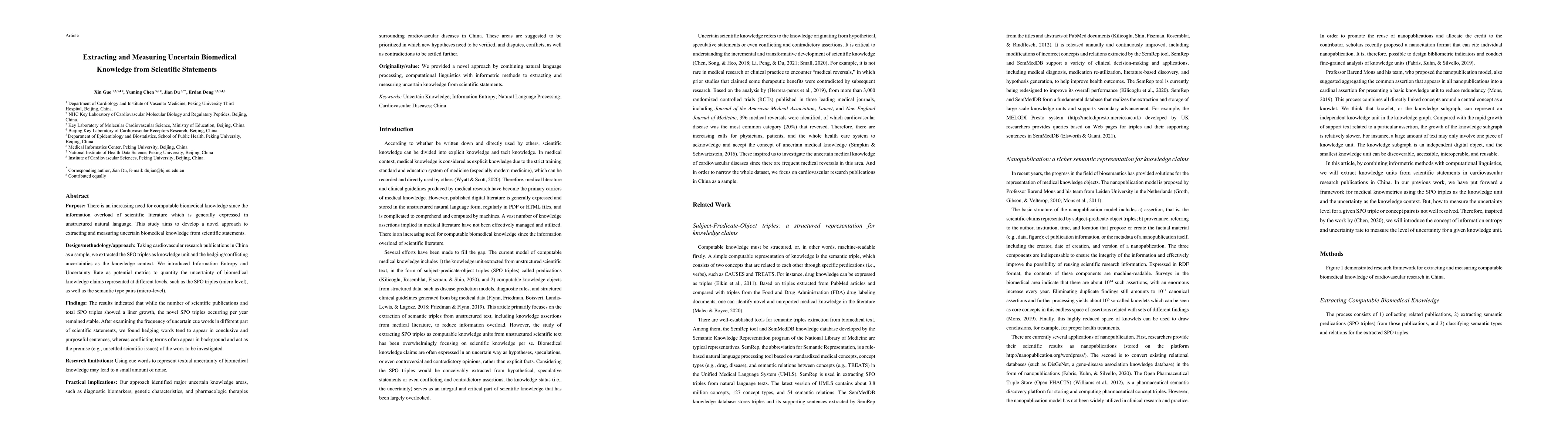 Researchers developed a method to extract and measure uncertain biomedical knowledge from scientific statements, identifying key areas such as diagnostic biomarkers and pharmacologic therapies in cardiovascular diseases.