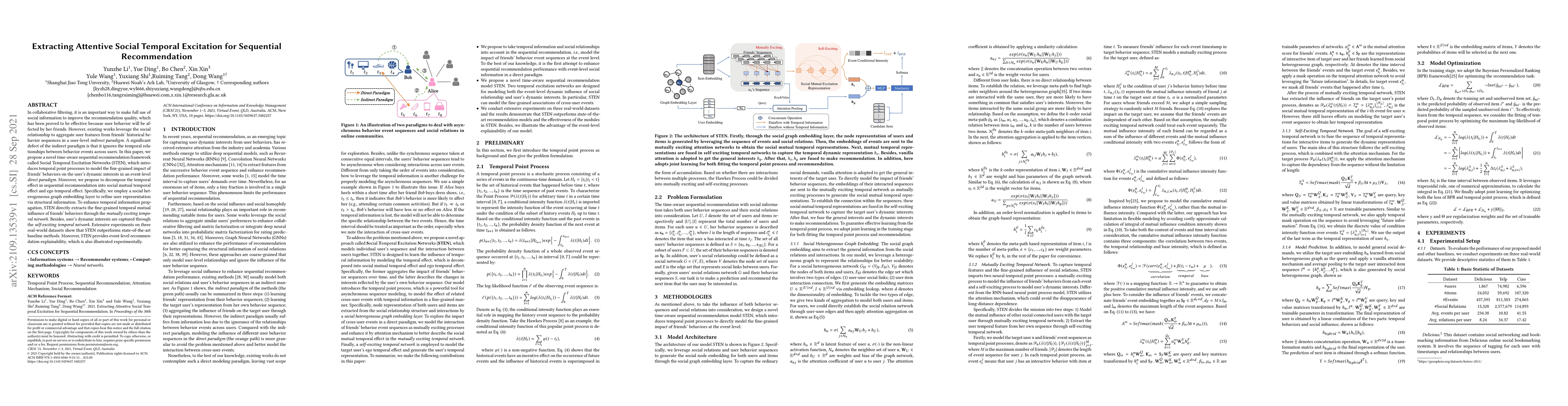 This paper proposes Social Temporal Excitation Networks (STEN) for sequential recommendation, which models the fine-grained temporal impact of friends' behaviors on user interests using a direct event-level approach. It decomposes temporal effects into social and ego influences, achieving better performance and explainability over existing methods.