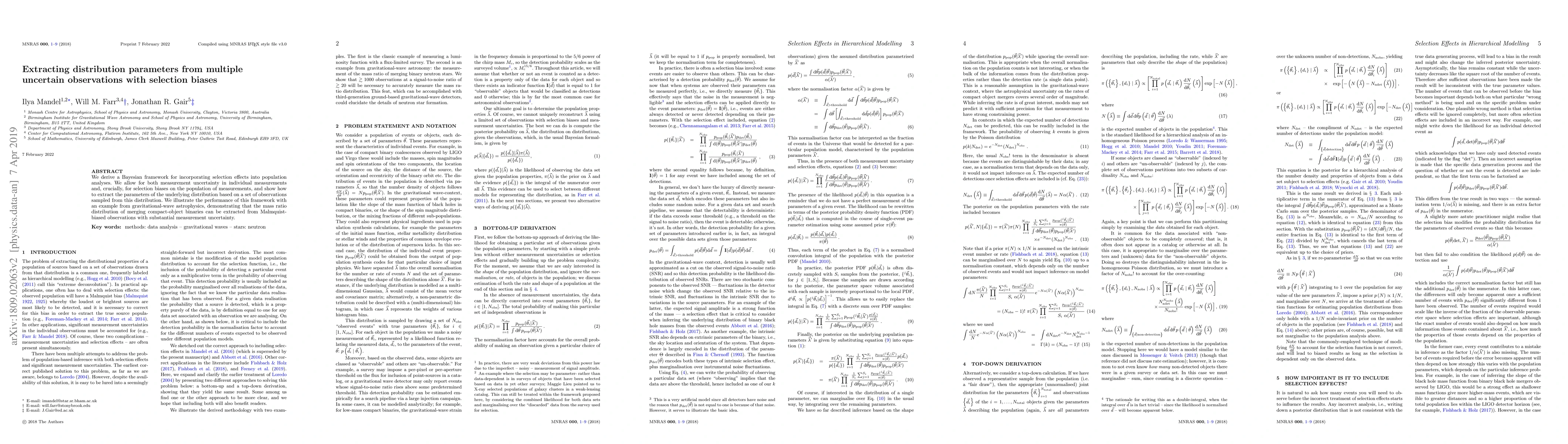 We derive a Bayesian framework for incorporating selection effects into population analyses. We allow for both measurement uncertainty in individual measurements and, crucially, for selection biases on the population of measurements, and show how to extract the parameters of the underlying distribution based on a set of observations sampled from this distribution. We illustrate the performance of this framework with an example from gravitational-wave astrophysics, demonstrating that the mass ratio distribution of merging compact-object binaries can be extracted from Malmquist-biased observations with substantial measurement uncertainty.