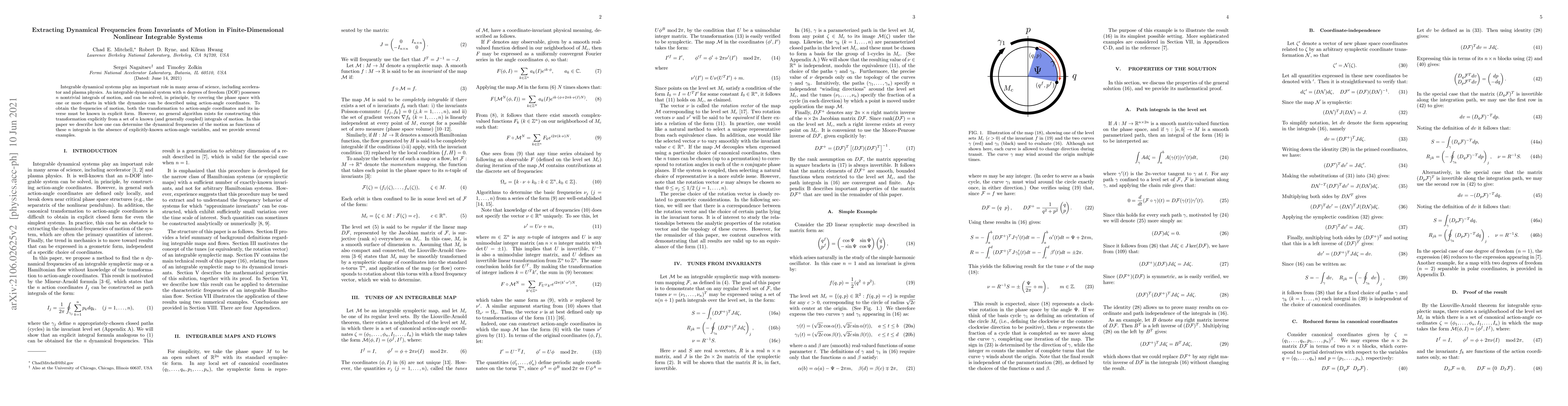 This paper presents a method for extracting dynamical frequencies from the invariants of motion in finite-dimensional nonlinear integrable systems, without requiring explicit action-angle variables. It demonstrates how to determine these frequencies as functions of known integrals of motion, providing practical examples.