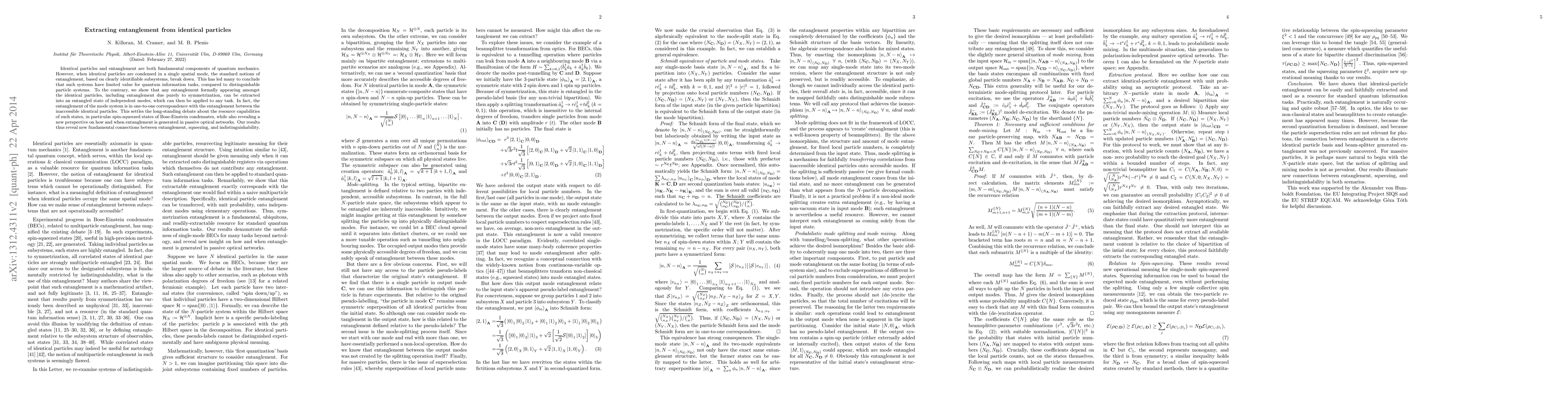 This research demonstrates that entanglement within identical particles can be extracted into an independent mode, preserving its value for quantum information tasks. It resolves debates about the resource capabilities of systems like Bose-Einstein condensates, revealing fundamental links between entanglement, squeezing, and particle indistinguishability.