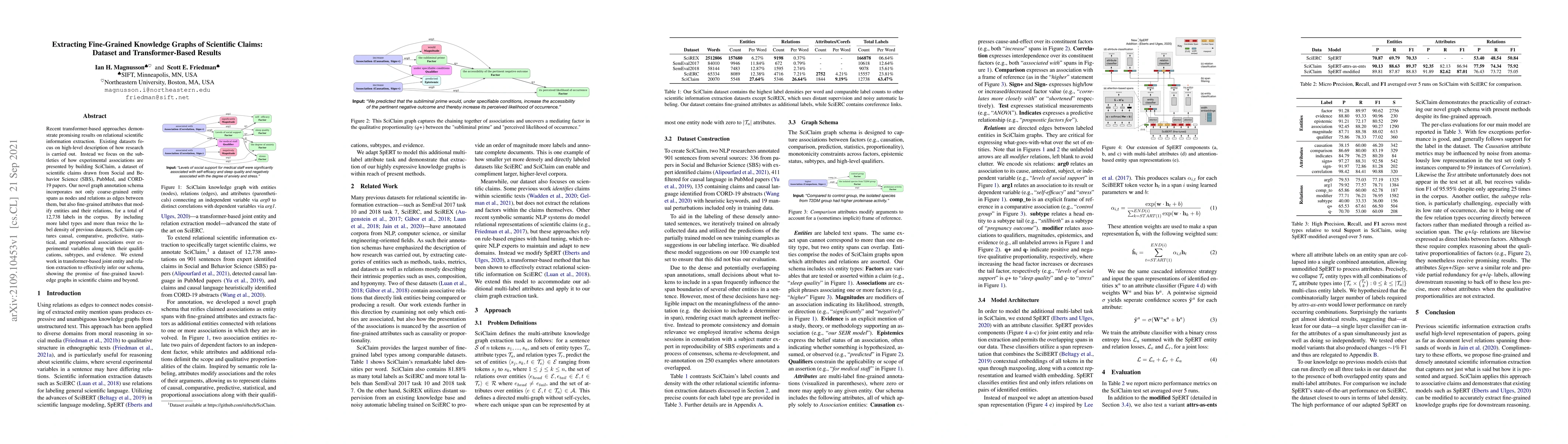 Recent transformer-based approaches demonstrate promising results on relational scientific information extraction. Existing datasets focus on high-level description of how research is carried out. Instead we focus on the subtleties of how experimental associations are presented by building SciClaim, a dataset of scientific claims drawn from Social and Behavior Science (SBS), PubMed, and CORD-19 papers. Our novel graph annotation schema incorporates not only coarse-grained entity spans as nodes and relations as edges between them, but also fine-grained attributes that modify entities and their relations, for a total of 12,738 labels in the corpus. By including more label types and more than twice the label density of previous datasets, SciClaim captures causal, comparative, predictive, statistical, and proportional associations over experimental variables along with their qualifications, subtypes, and evidence. We extend work in transformer-based joint entity and relation extraction to effectively infer our schema, showing the promise of fine-grained knowledge graphs in scientific claims and beyond.