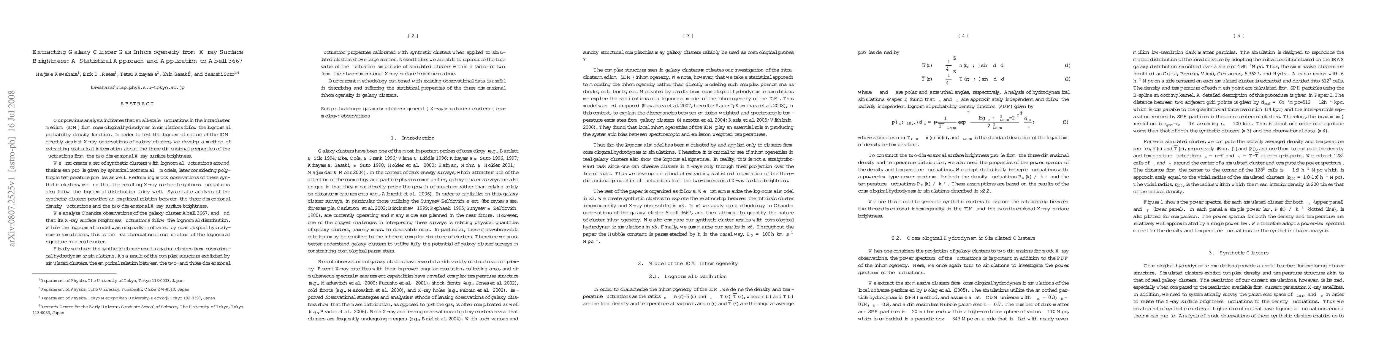 This paper develops a statistical method to extract three-dimensional properties of galaxy cluster gas inhomogeneity from two-dimensional X-ray surface brightness, confirming the lognormal distribution of intracluster medium fluctuations through observations of Abell 3667. The method is validated using synthetic clusters and shows potential for describing real cluster structures.