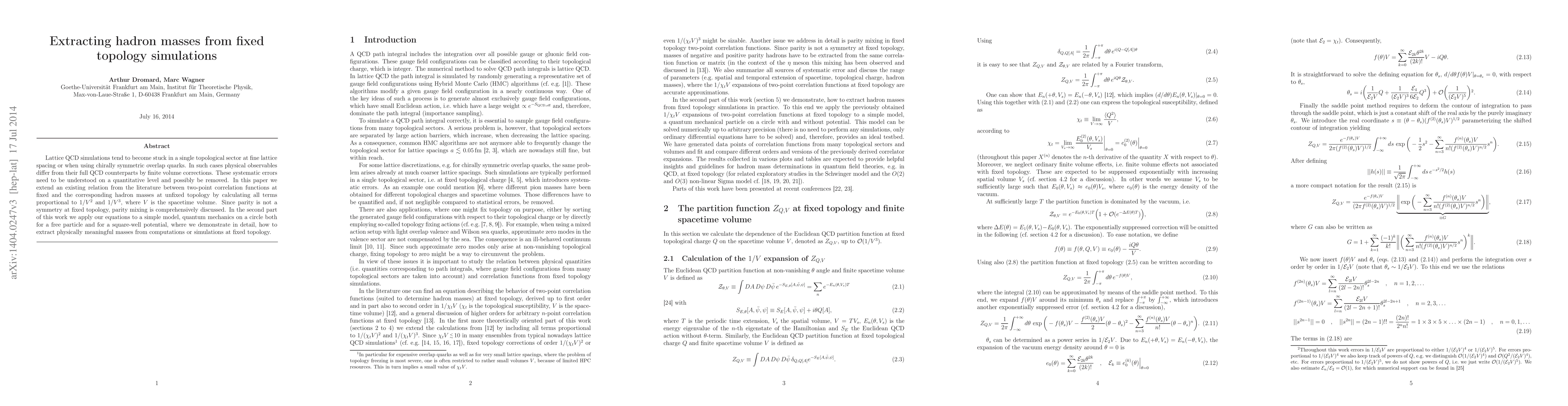 This paper develops a method to extract hadron masses from lattice QCD simulations constrained to fixed topology, addressing systematic errors due to finite volume corrections. It extends a relation between fixed and unfixed topology observables, calculating higher-order terms, and applies the method to quantum mechanical models to demonstrate extraction of meaningful masses.