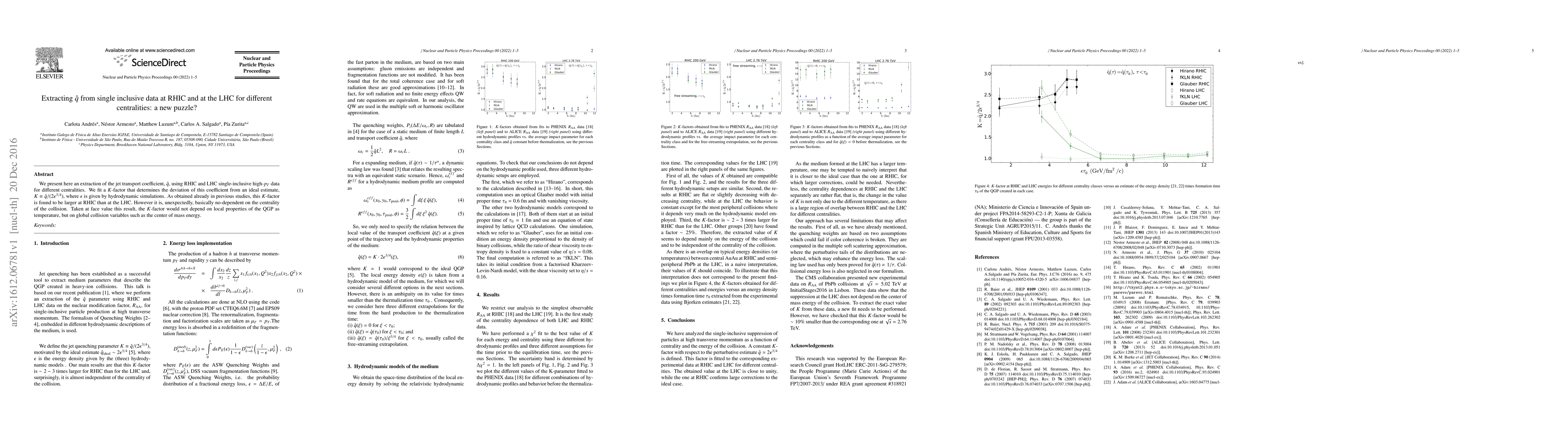 We present here an extraction of the jet transport coefficient, $\hat{q}$, using RHIC and LHC single-inclusive high-$p_T$ data for different centralities. We fit a $K$-factor that determines the deviation of this coefficient from an ideal estimate, $K \equiv \hat{q}/(2\epsilon^{3/4})$, where $\epsilon$ is given by hydrodynamic simulations. As obtained already in previous studies, this $K$-factor is found to be larger at RHIC than at the LHC. However it is, unexpectedly, basically no-dependent on the centrality of the collision. Taken at face value this result, the $K$-factor would not depend on local properties of the QGP as temperature, but on global collision variables such as the center of mass energy.