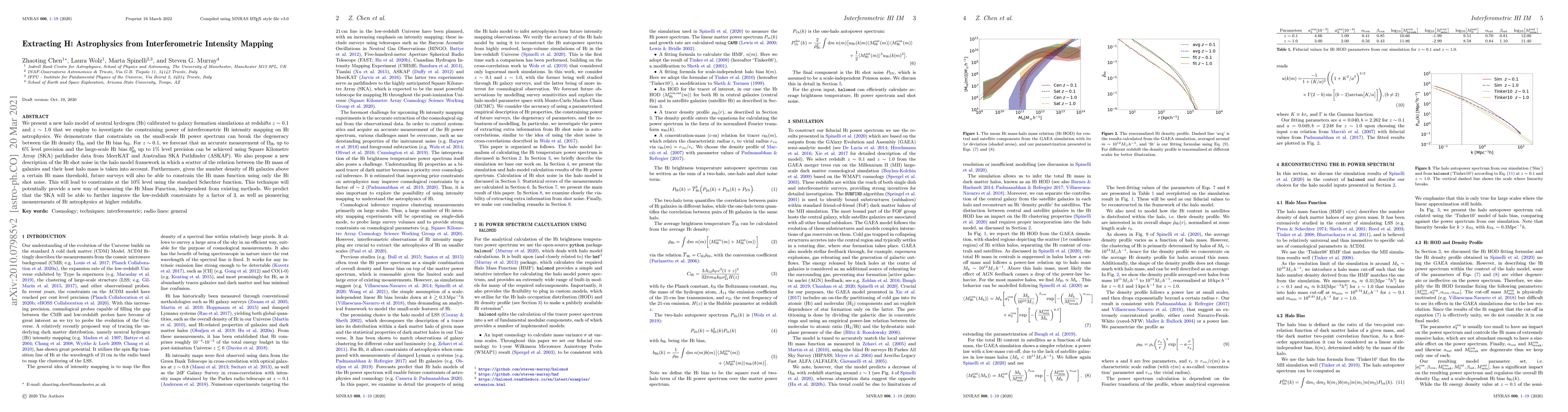This paper introduces a new halo model for neutral hydrogen (HI) calibrated to galaxy formation simulations, demonstrating its potential to constrain HI astrophysics through interferometric intensity mapping. The study forecasts that upcoming SKA pathfinder data will achieve significant precision in measuring HI density and bias, and proposes a novel method for measuring the HI mass function using HI shot noise, potentially improving low-redshift constraints by a factor of three.