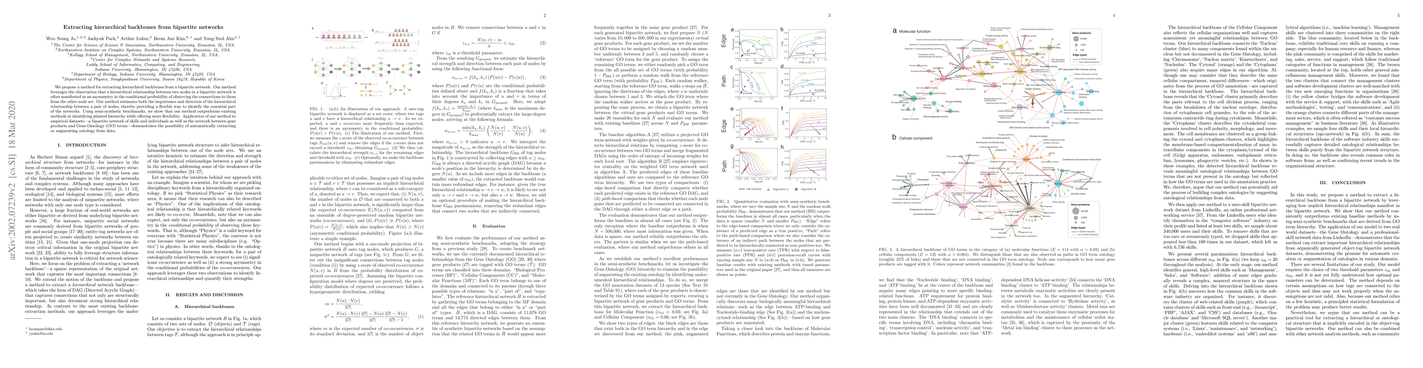 This paper introduces a novel method for extracting hierarchical backbones from bipartite networks by identifying asymmetric conditional probabilities, which signify hierarchical relationships. The proposed method outperforms existing techniques in benchmark tests and shows potential for automatically extracting or augmenting ontologies from empirical datasets.
