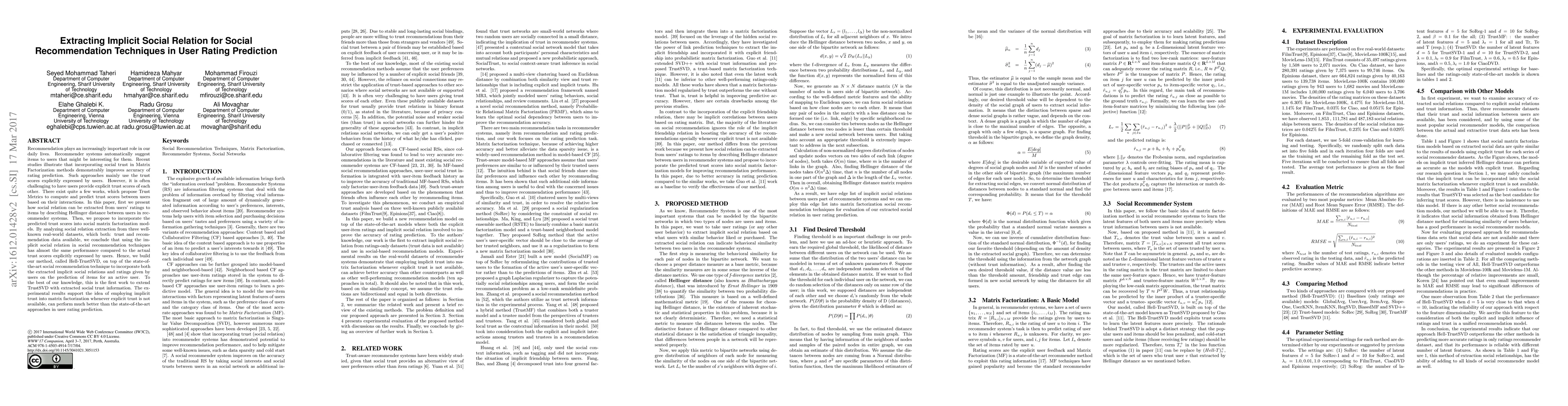 This paper explores extracting implicit social relations from user ratings to improve recommendation accuracy, suggesting a novel approach called Hell-TrustSVD that outperforms state-of-the-art methods in user rating prediction.