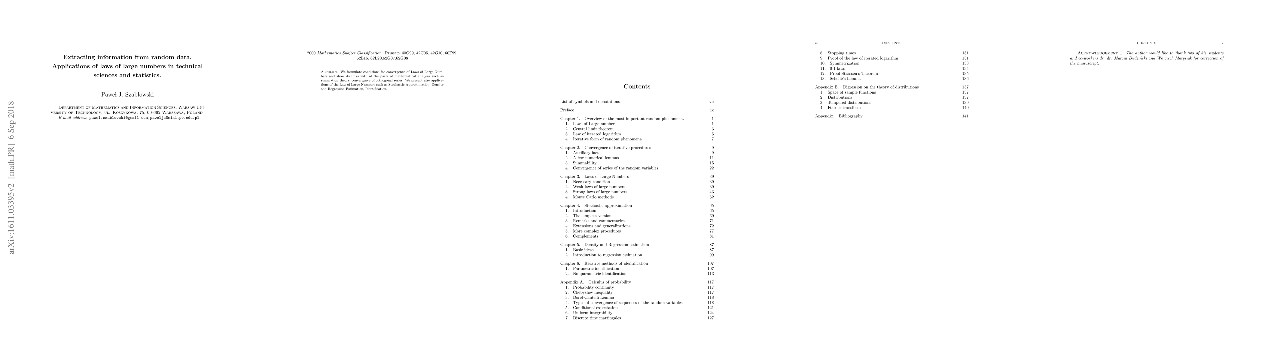 We formulate conditions for convergence of Laws of Large Numbers and show its links with of the parts of mathematical analysis such as summation theory, convergence of orthogonal series. We present also applications of the Law of Large Numbers such as Stochastic Approximation, Density and Regression Estimation, Identification.