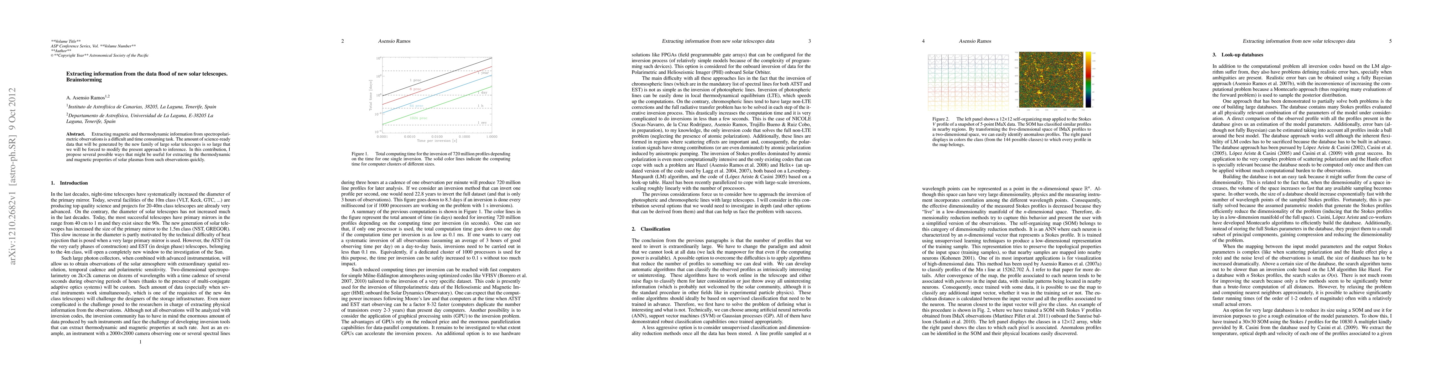 Extracting magnetic and thermodynamic information from spectropolarimetric observations is a difficult and time consuming task. The amount of science-ready data that will be generated by the new family of large solar telescopes is so large that we will be forced to modify the present approach to inference. In this contribution, I propose several possible ways that might be useful for extracting the thermodynamic and magnetic properties of solar plasmas from such observations quickly.
