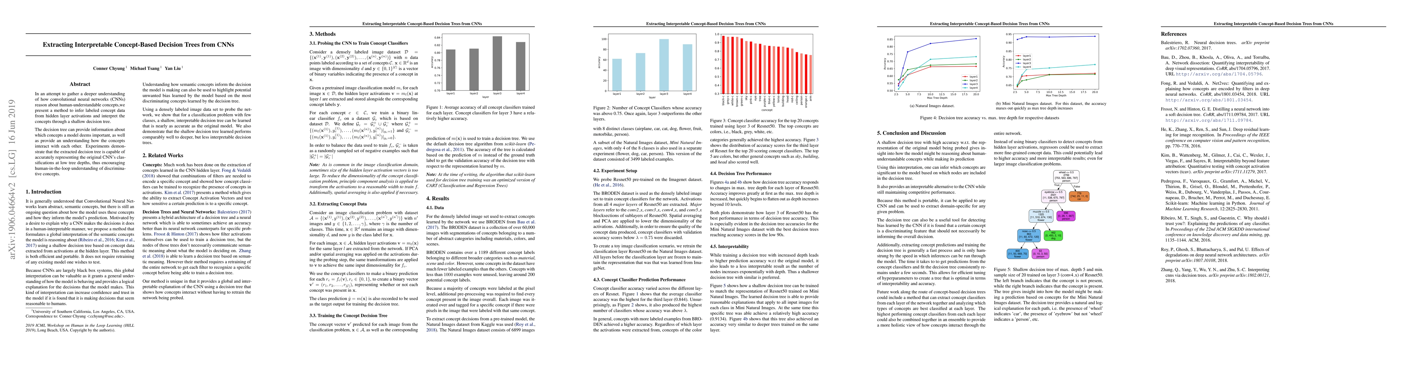 Researchers developed a method to extract interpretable concept-based decision trees from CNNs, allowing for human-understandable explanations of model reasoning. The extracted decision trees accurately represented the original CNN's classifications at low depths.