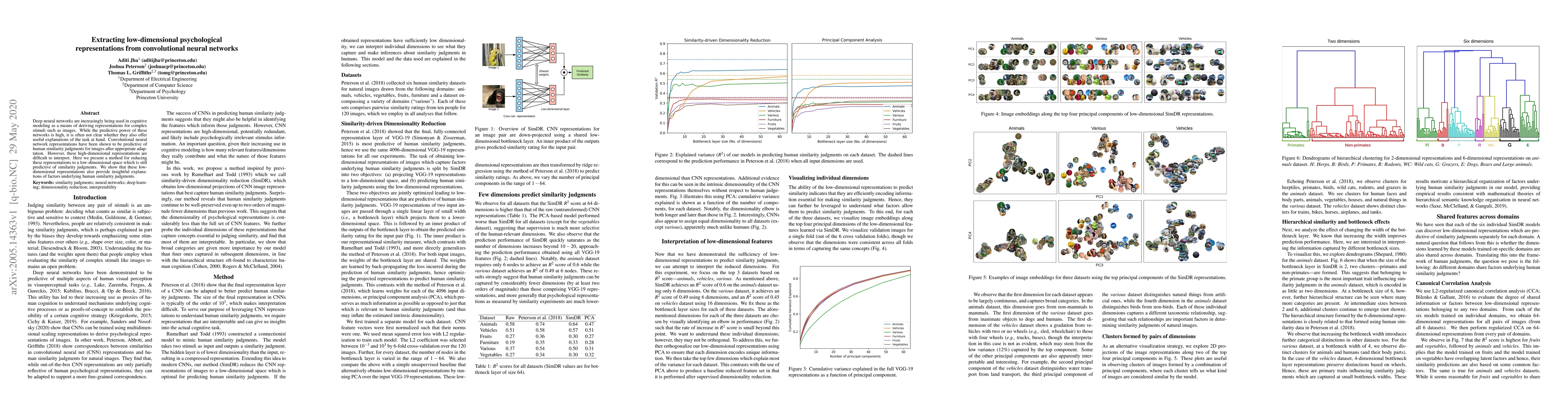 This paper proposes a method to extract low-dimensional psychological representations from convolutional neural networks, enabling them to predict human image similarity judgments while offering more interpretable insights into the underlying cognitive processes.