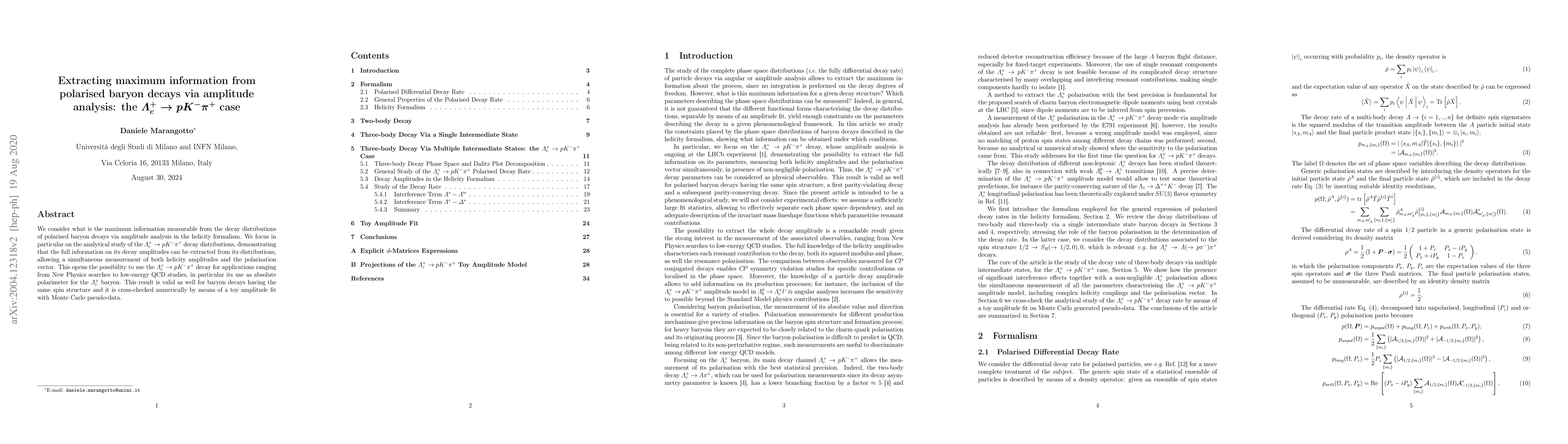 This paper investigates the maximum information obtainable from the decay distributions of the $\Lambda^+_c \to pK^-\pi^+$ decay using amplitude analysis in the helicity formalism. It demonstrates that the full decay amplitude information, including helicity amplitudes and polarisation vector, can be extracted, enabling applications in New Physics searches and low-energy QCD studies.